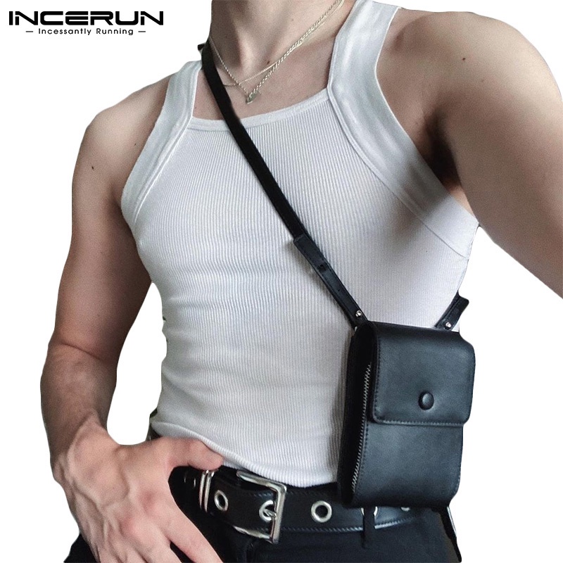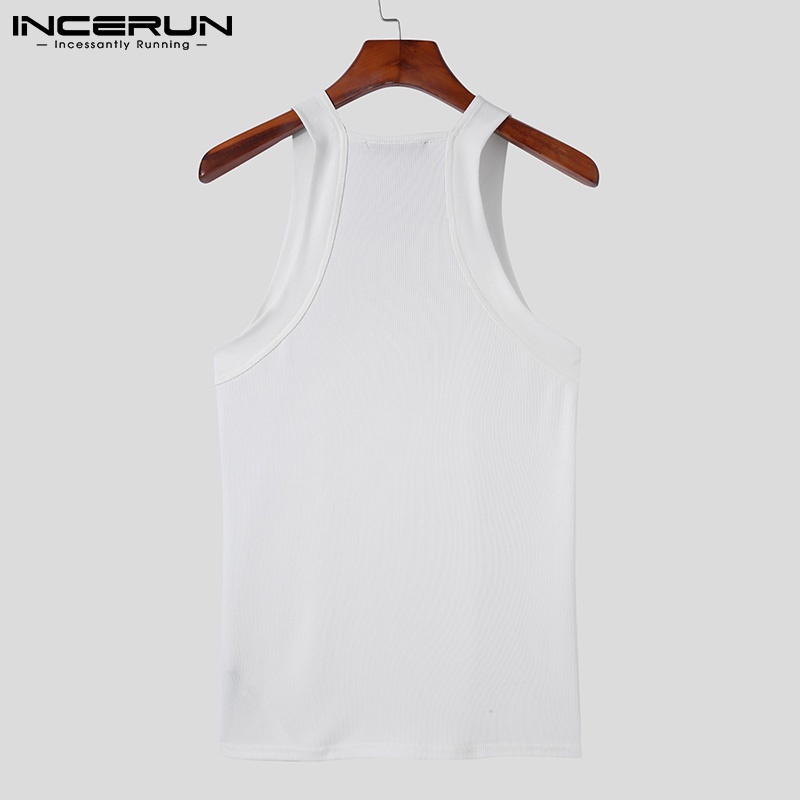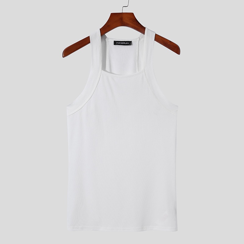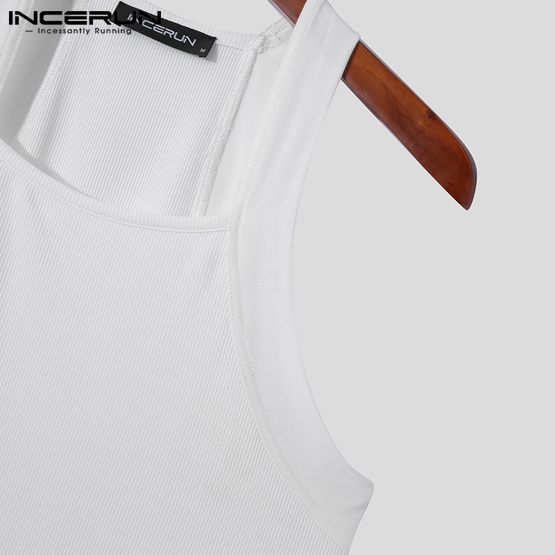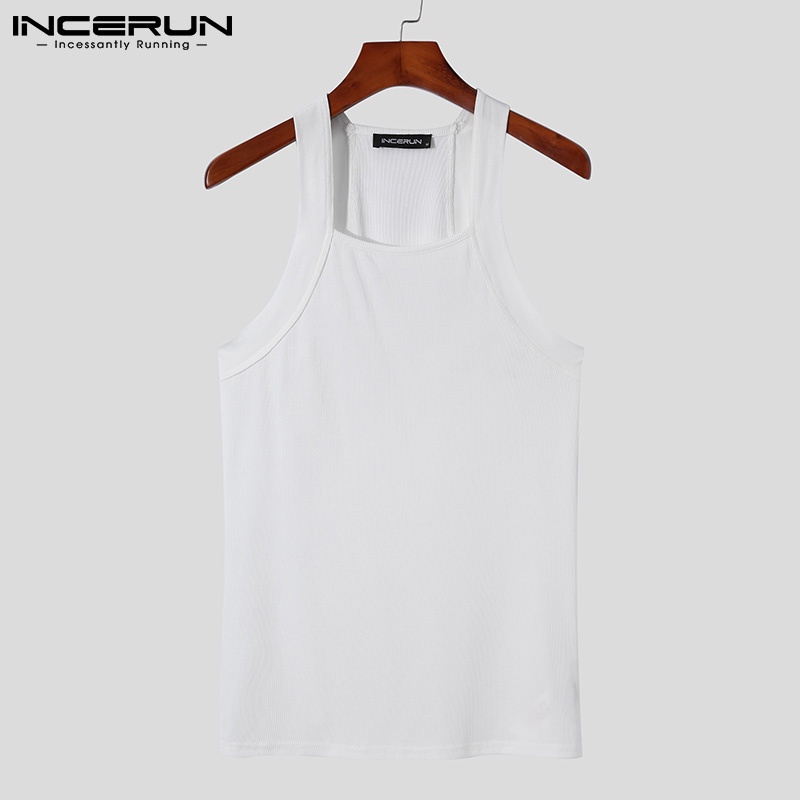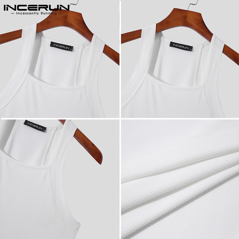 Incerun เสื้อกล้ามลําลอง แขนกุด คอสี่เหลี่ยม สีขาว สําหรับผู้ชาย
