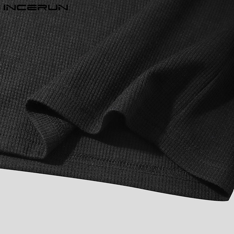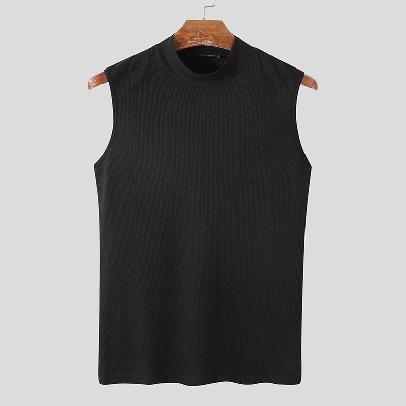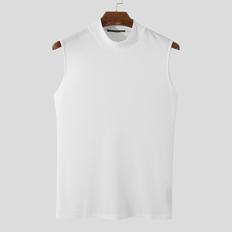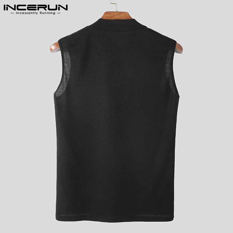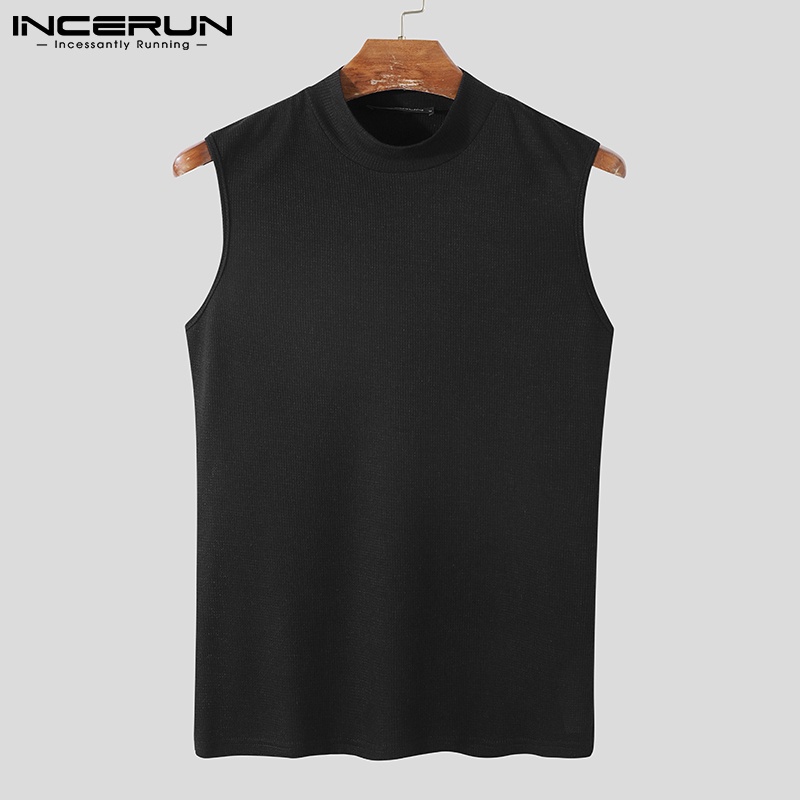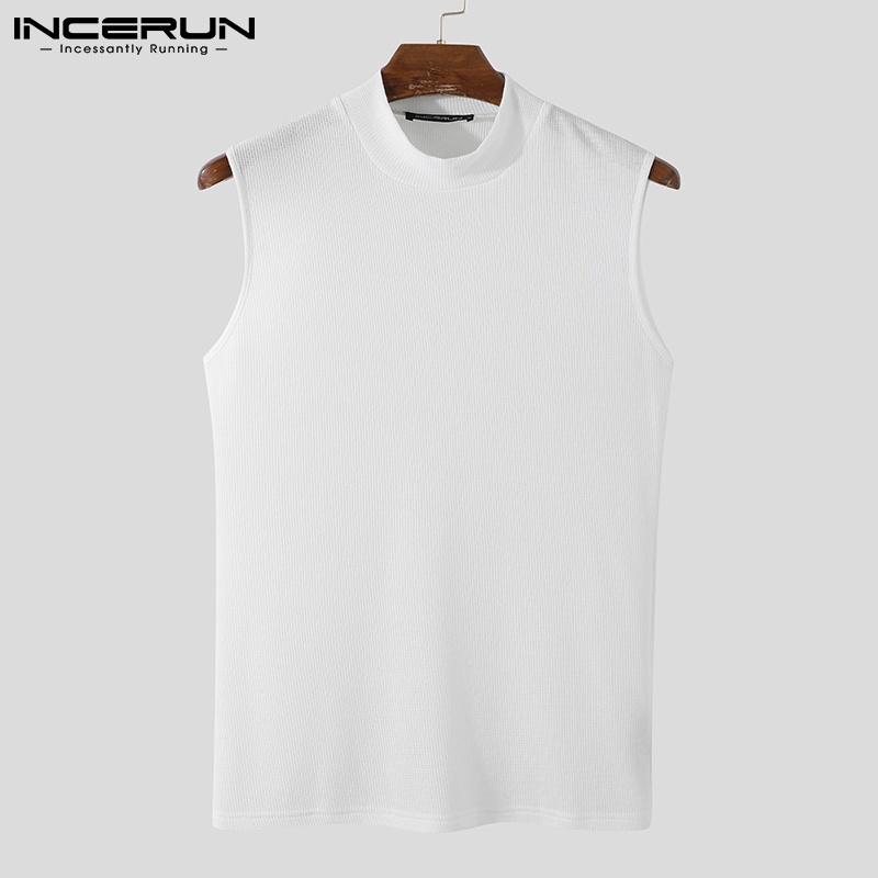 Incerun เสื้อกล้ามถัก แขนกุด คอสูง ทรงสลิมฟิต สีพื้น แฟชั่นสําหรับผู้ชาย