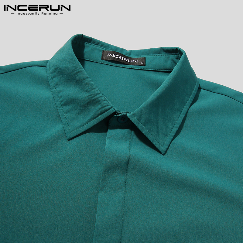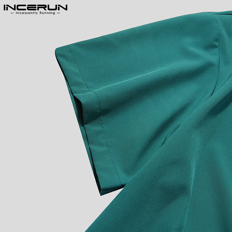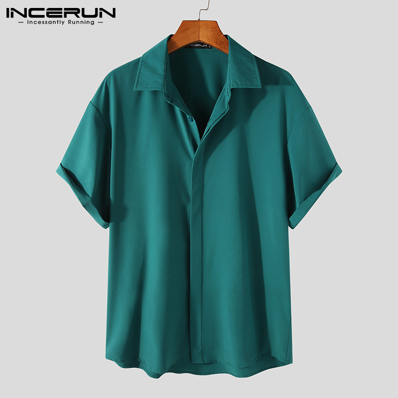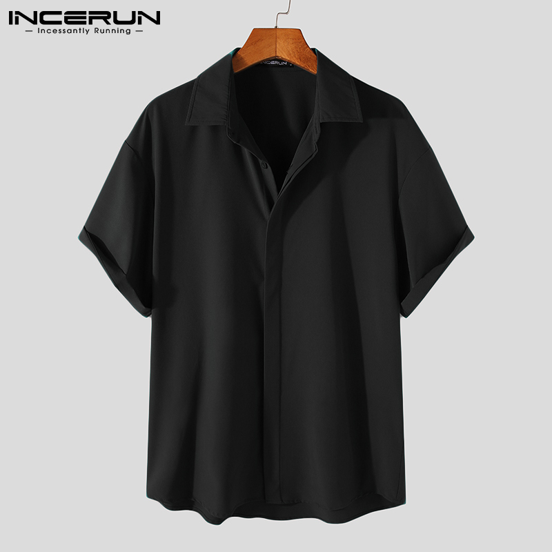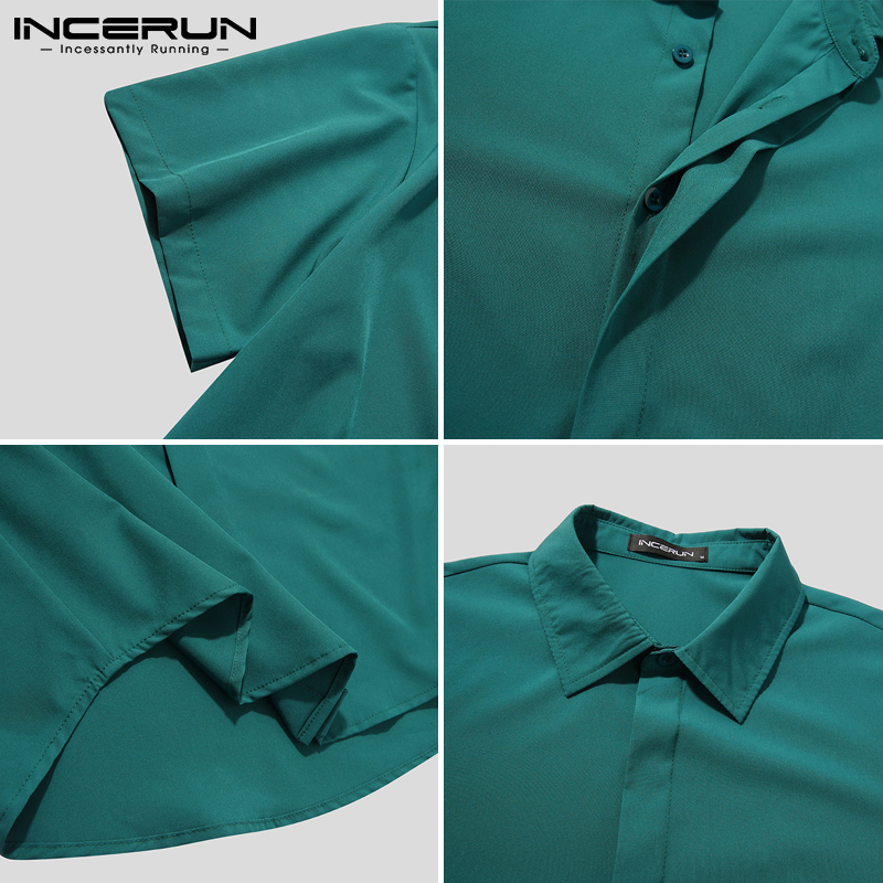 Incerun เสื้อเชิ้ต แขนสั้น ติดกระดุม ทรงหลวม แฟชั่นผู้ชาย