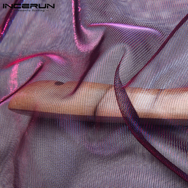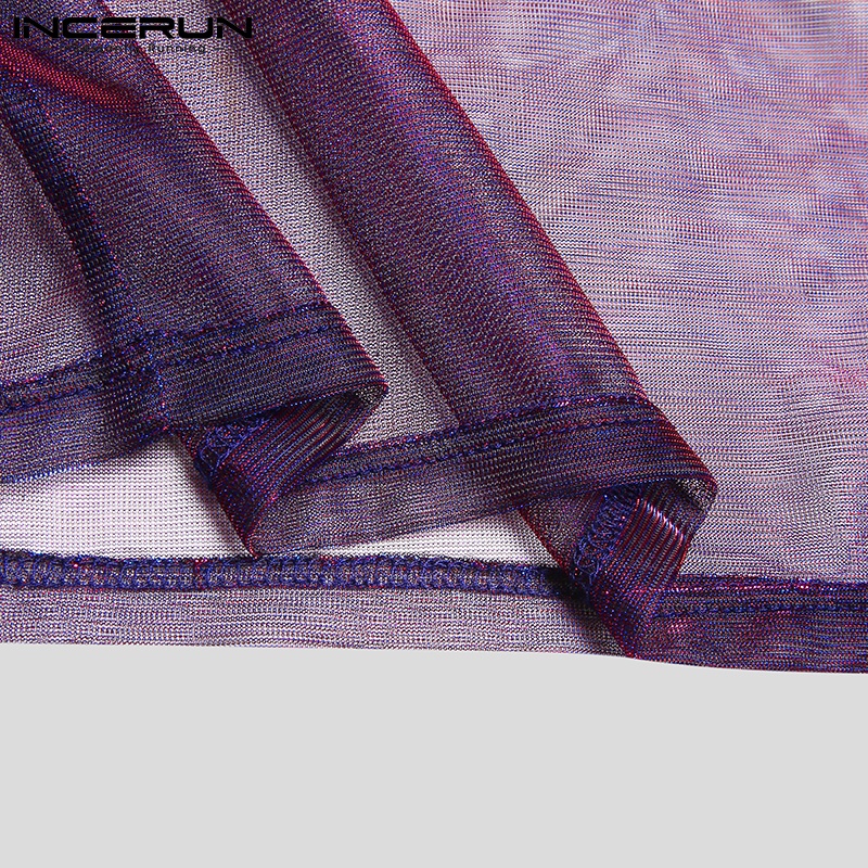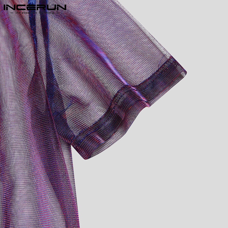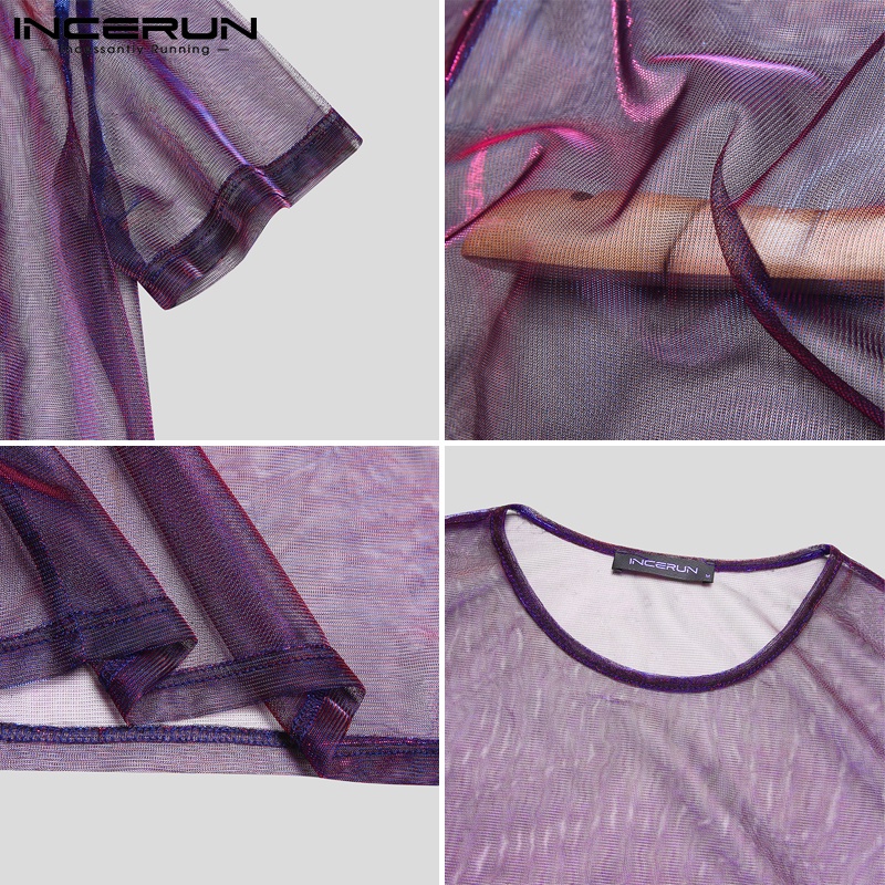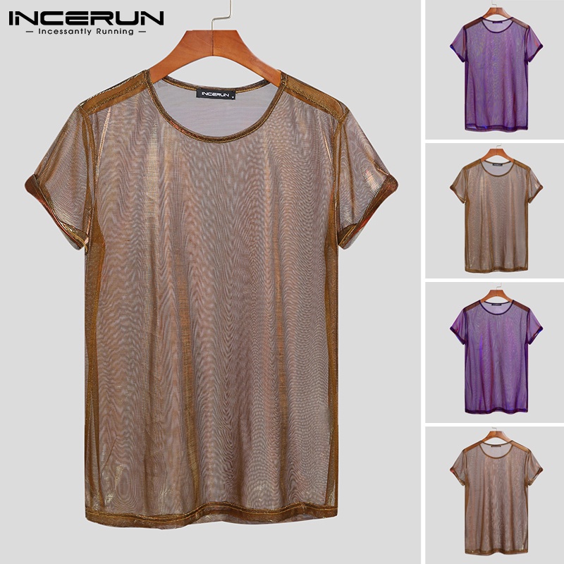 Incerun เสื้อแขนสั้น คอกลม ผ้าซีทรู สีพื้น เซ็กซี่ สำหรับผู้ชาย