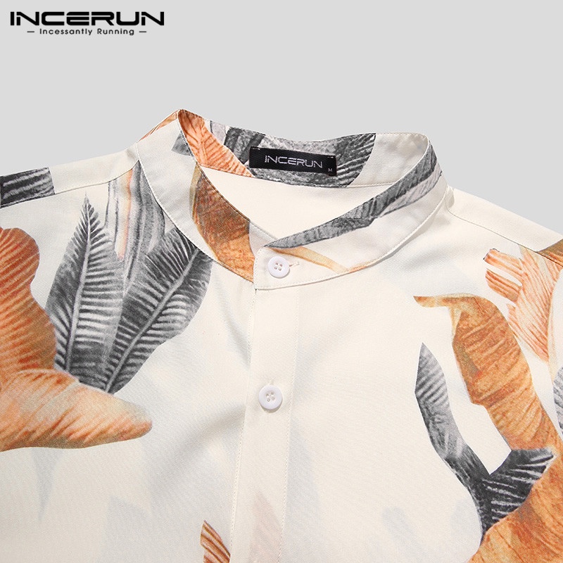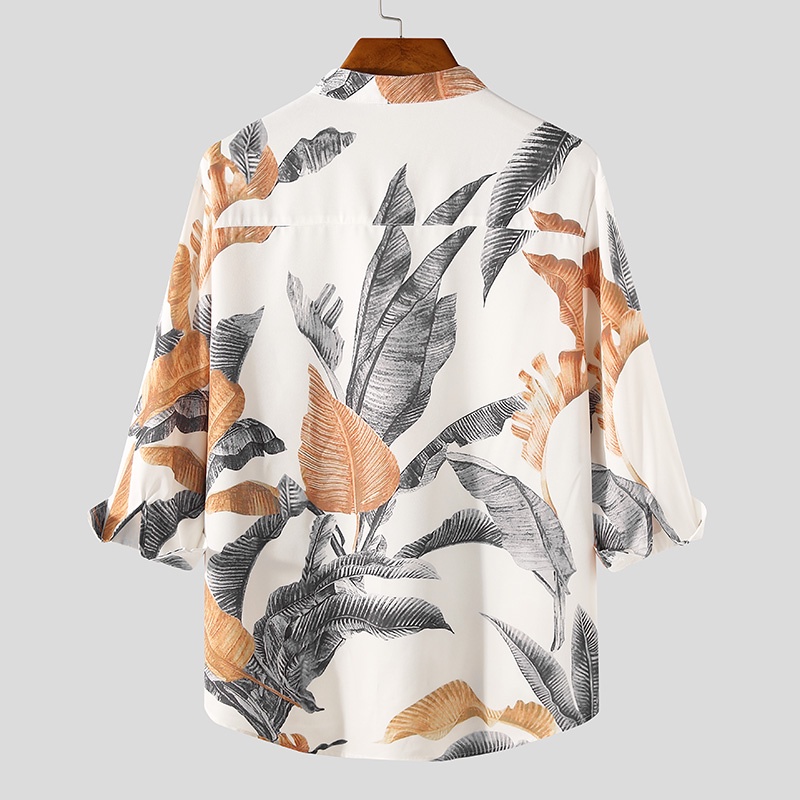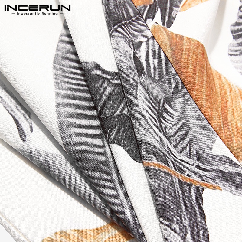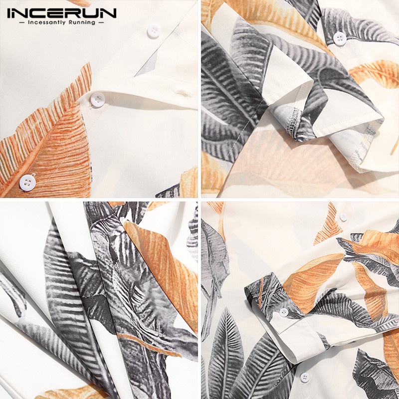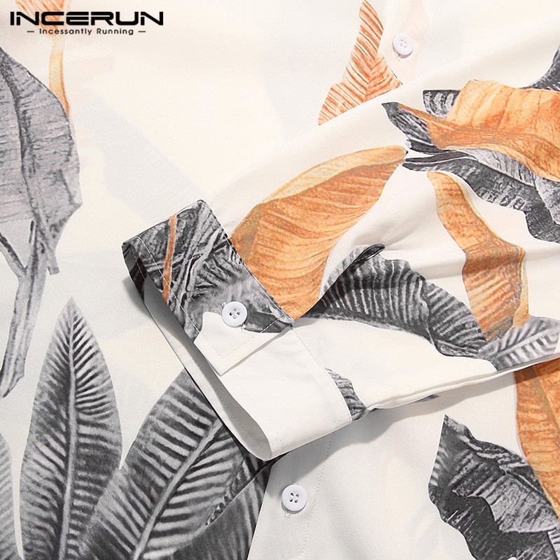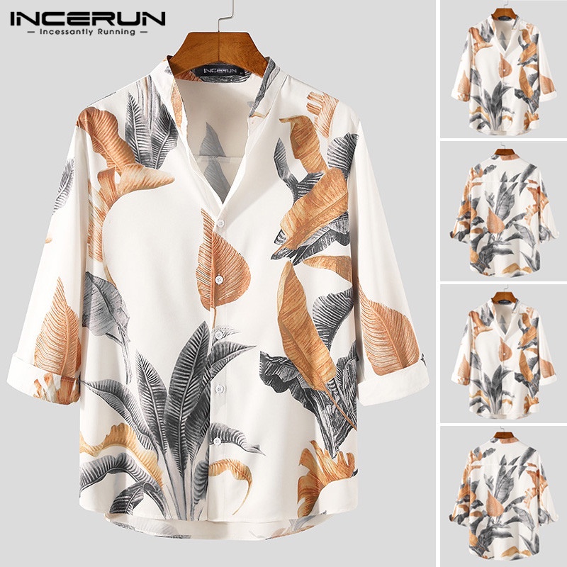 Incerun เสื้อเชิ้ตลําลอง แขน 3/4 คอวี พิมพ์ลายดอกไม้ วินเทจ สําหรับผู้ชาย