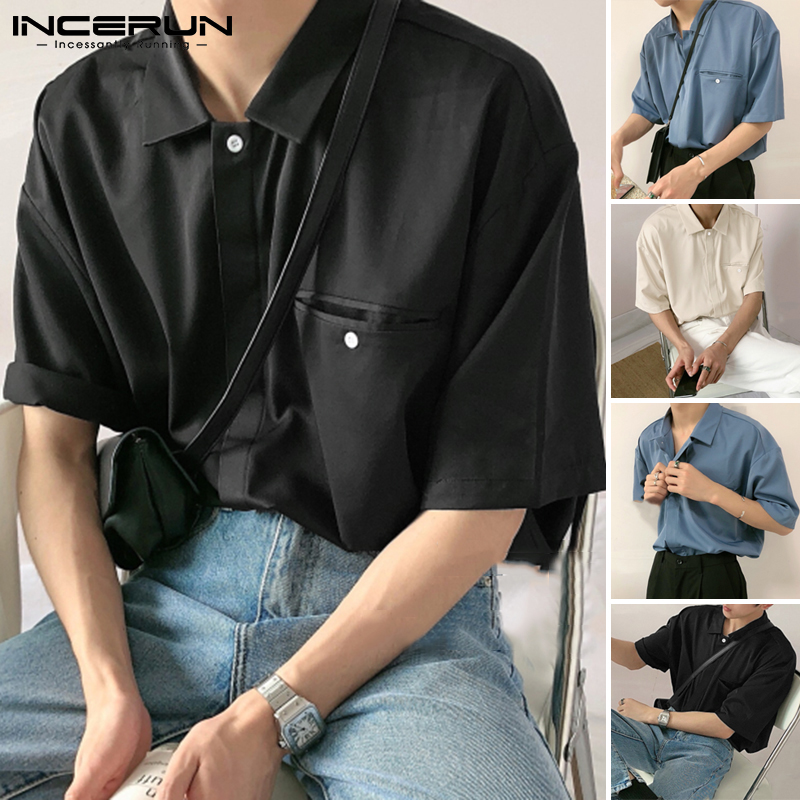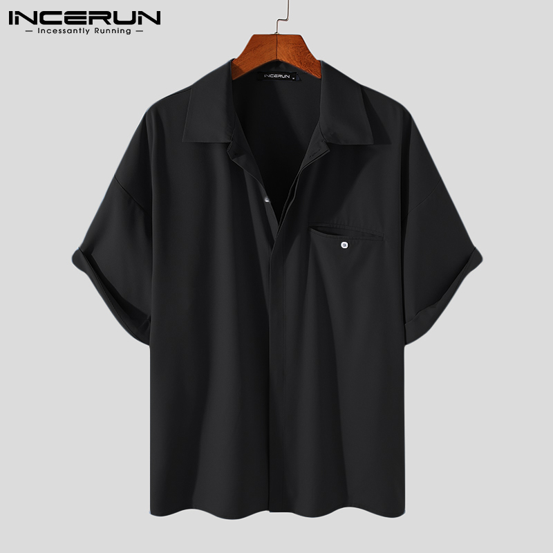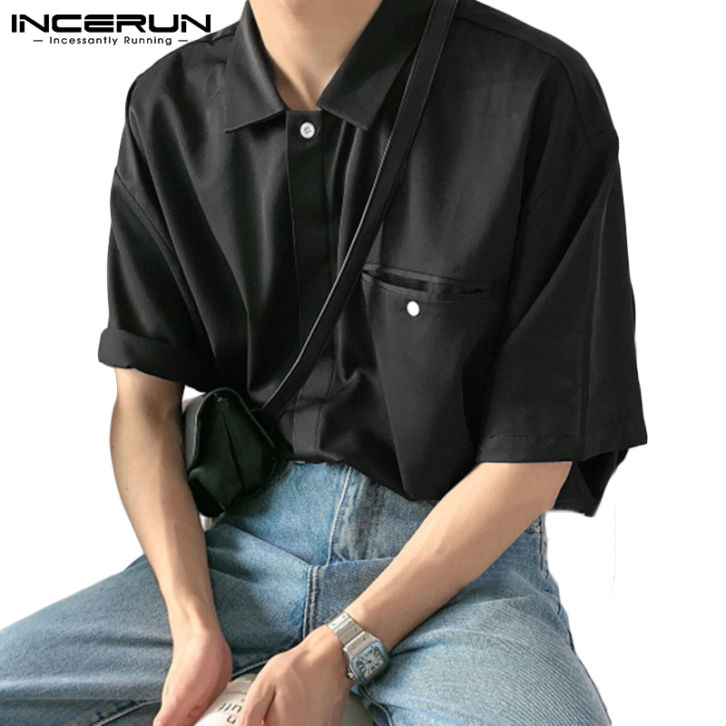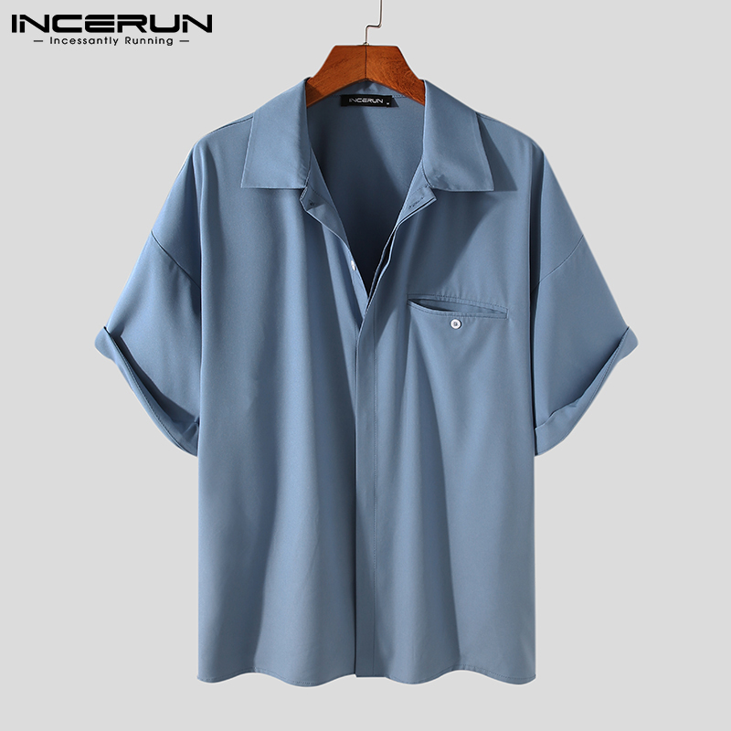 Incerun เสื้อเชิ้ต แขนสั้น สไตล์ย้อนยุค สำหรับผู้ชาย
