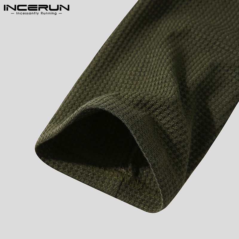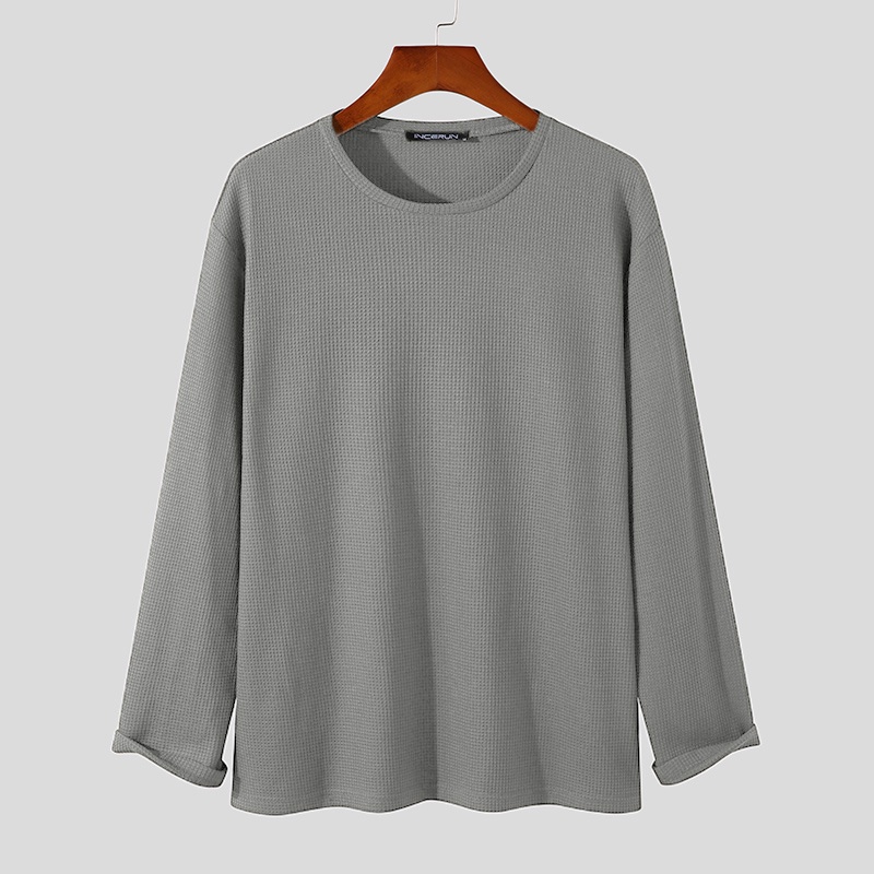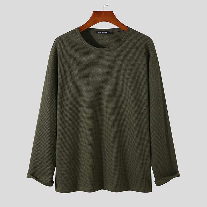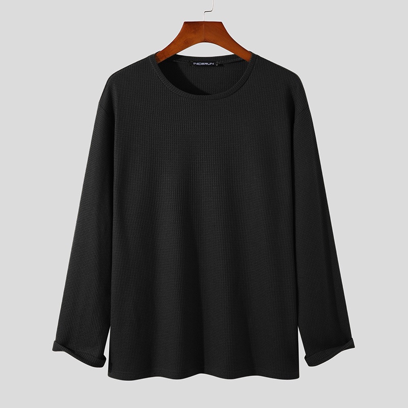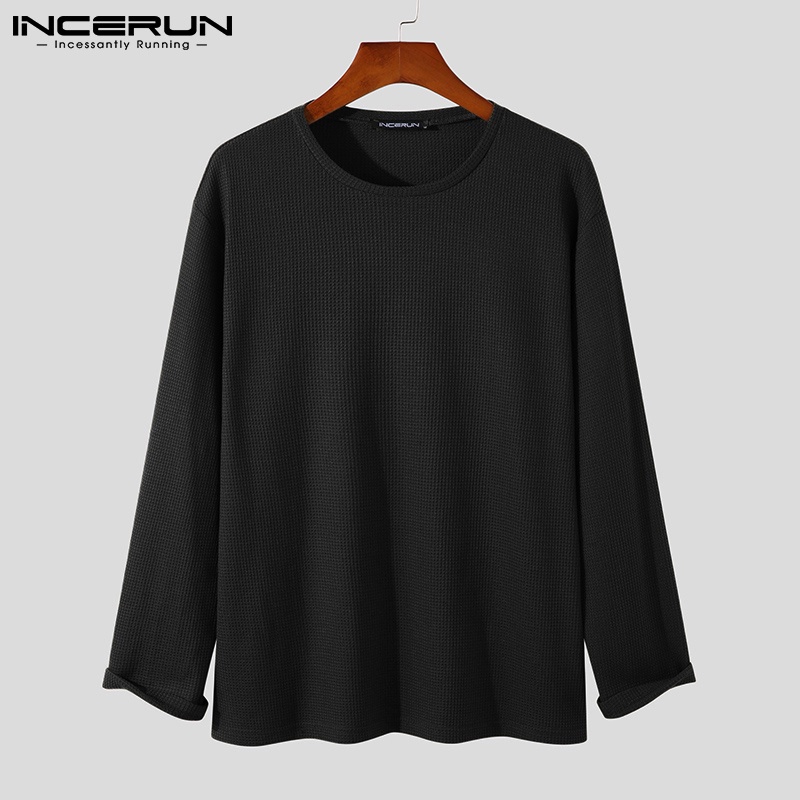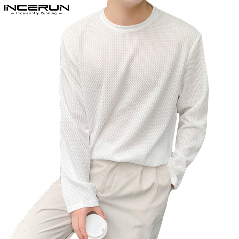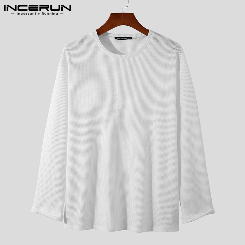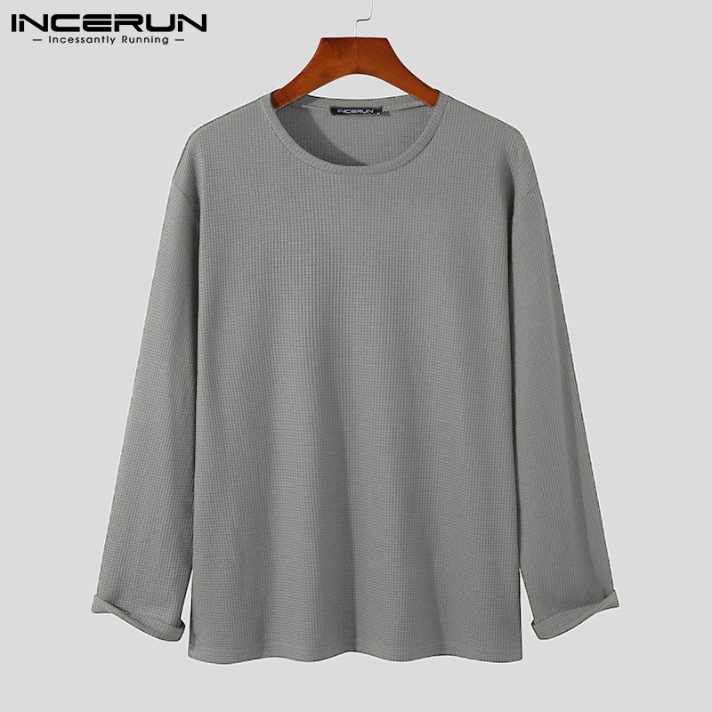 Incerun เสื้อยืด แขนยาว สีพื้น สไตล์เรียบง่าย สําหรับผู้ชาย 4 สี
