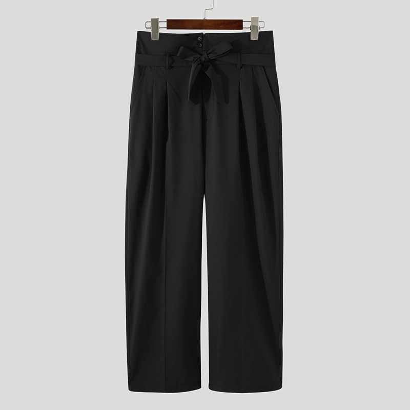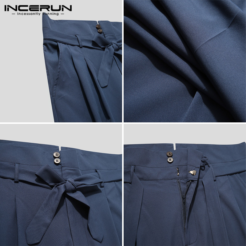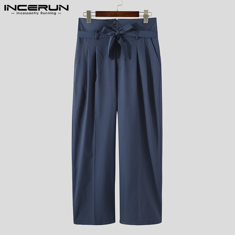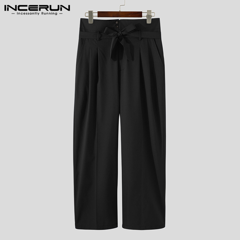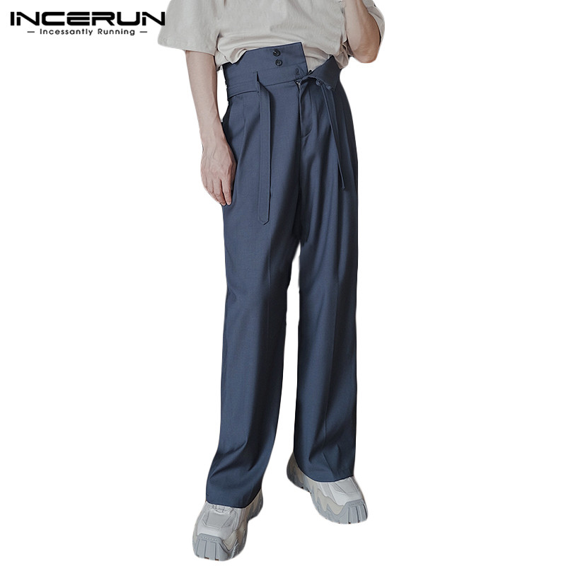 Incerun กางเกงขายาว เอวสูง แฟชั่นสำหรับผู้ชาย