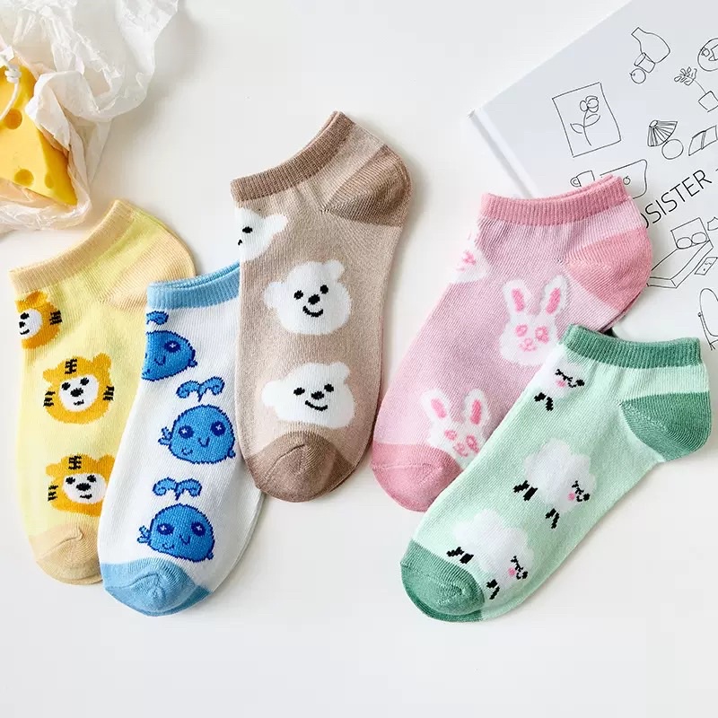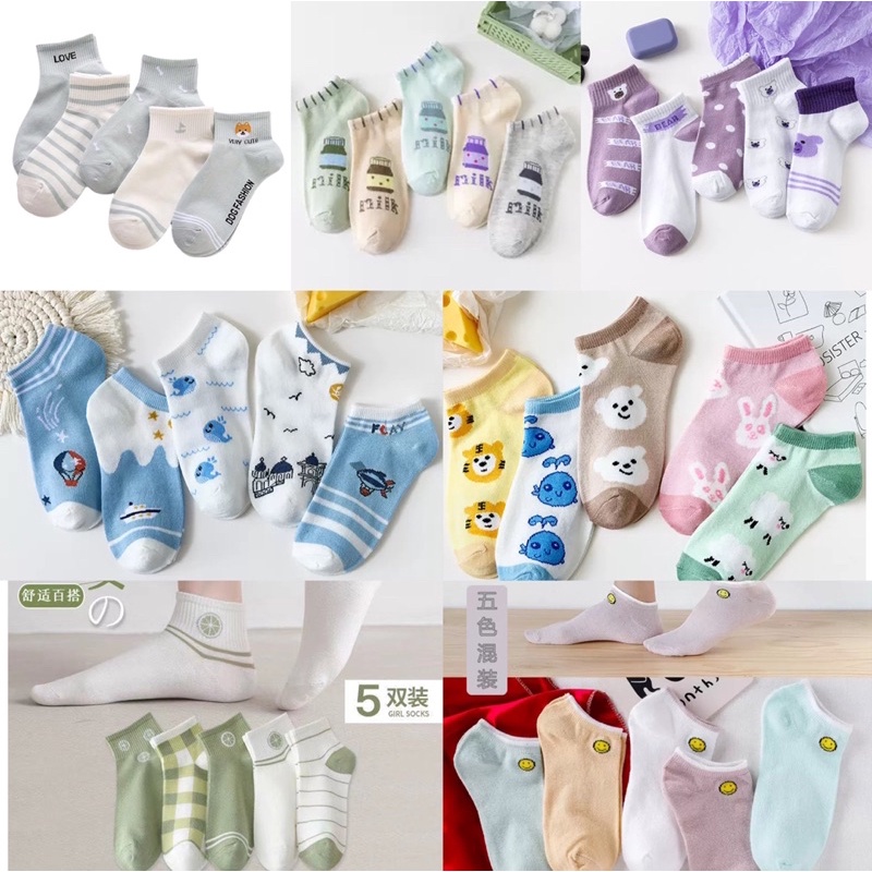 ถุงเท้าแฟชั่น ถุง เท้าข้อสั้น มี 7 แบบให้เลือก [1 เซตมี 5คู่ ]ใส่ได้ทั้ง ช/ญ