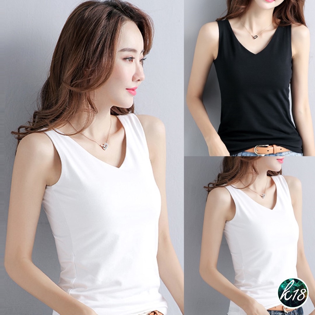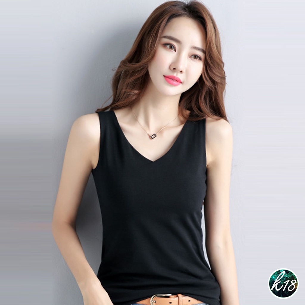 K18💜Korean เสื้อกล้ามสไตล์ไร้ขอบ คอวีแขนกุด 2 สี