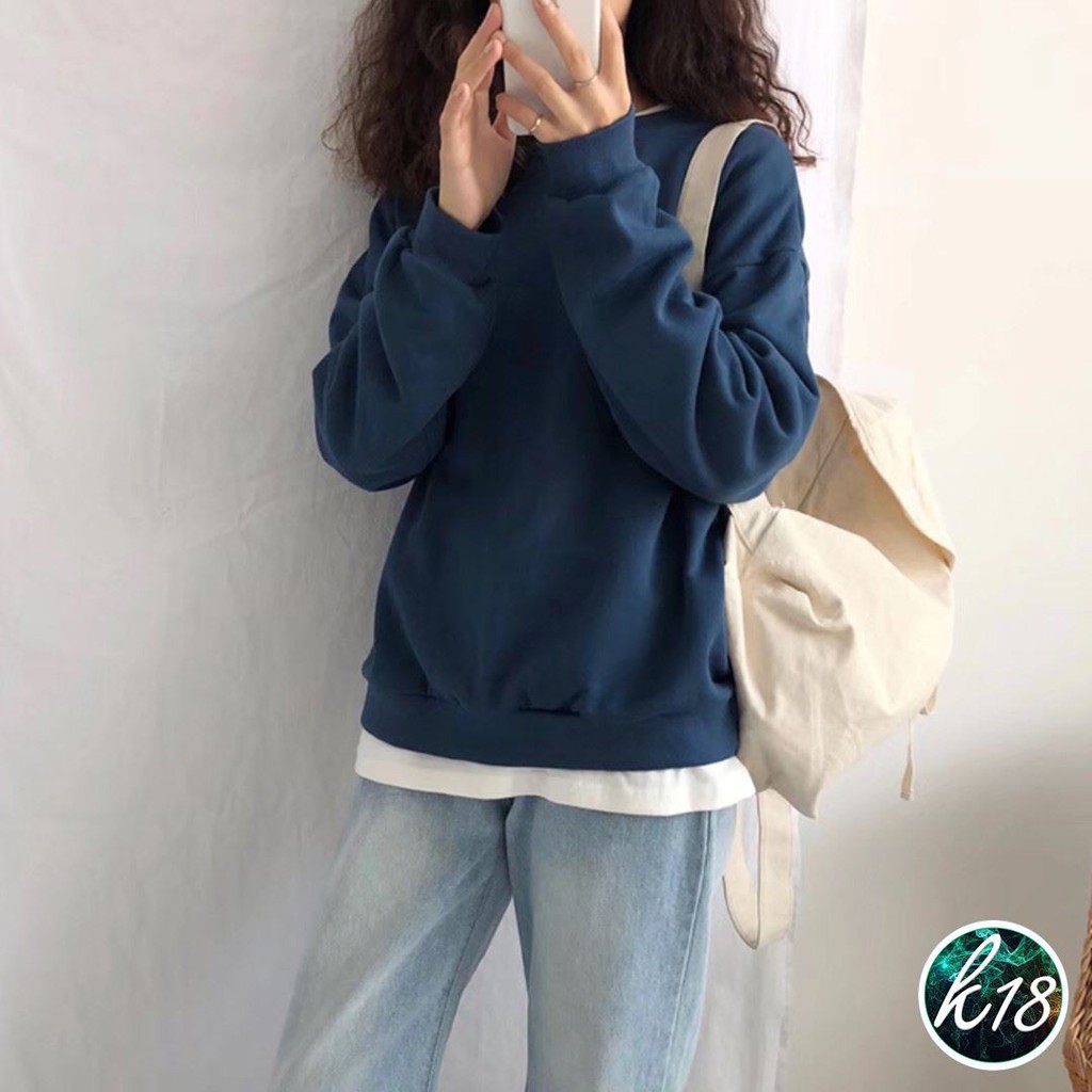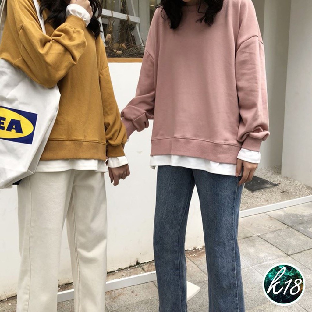 K18💜Korean เสื้อกันหนาว ทรงโอเวอร์ไซส์ แขนจั๊ม ผ้าสำลีหนานุ่ม 16 สี