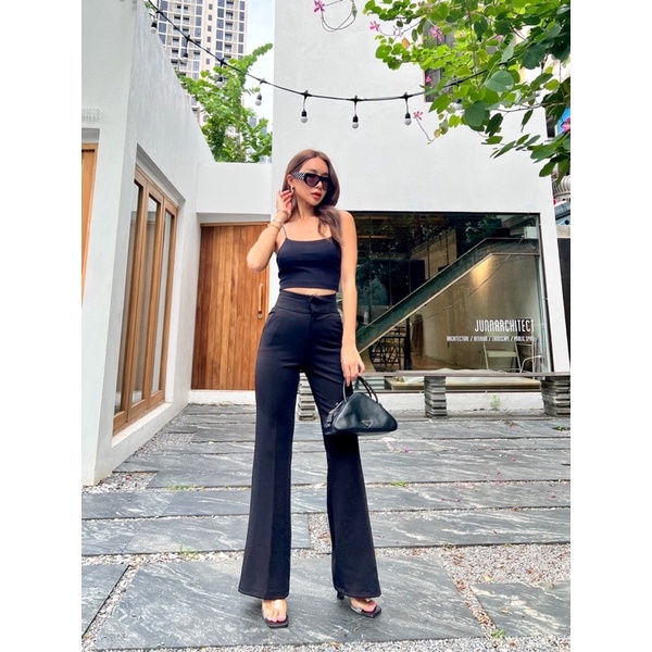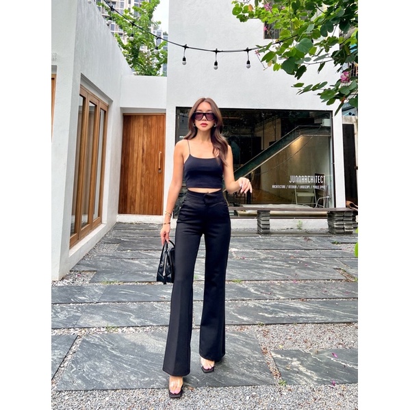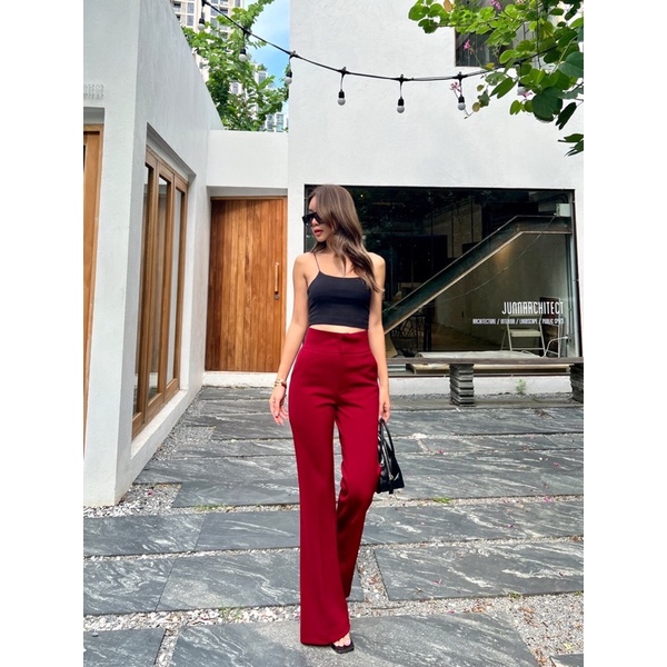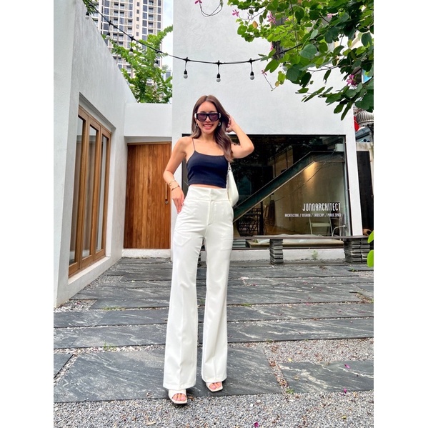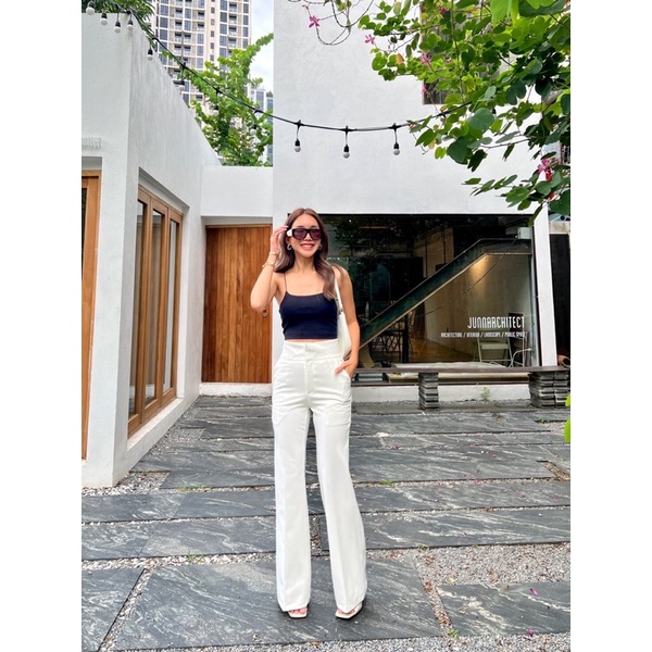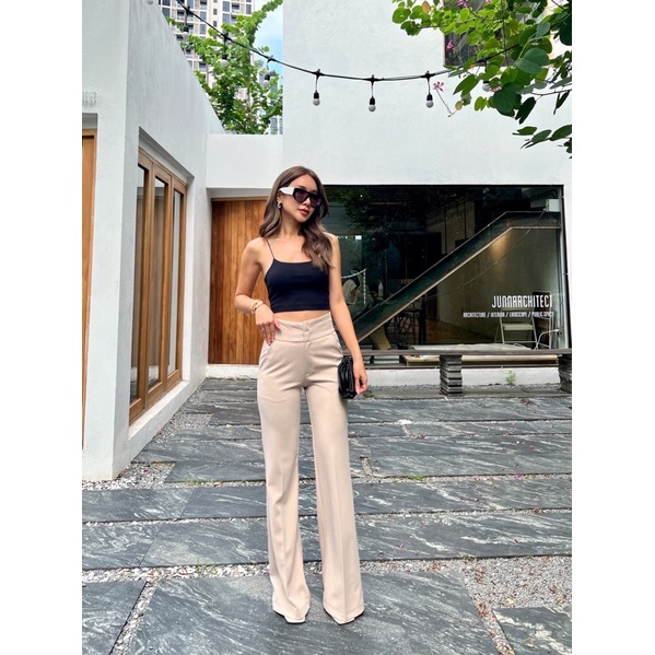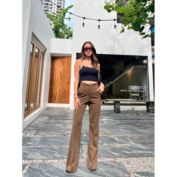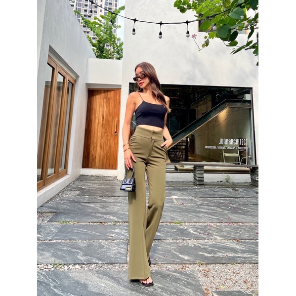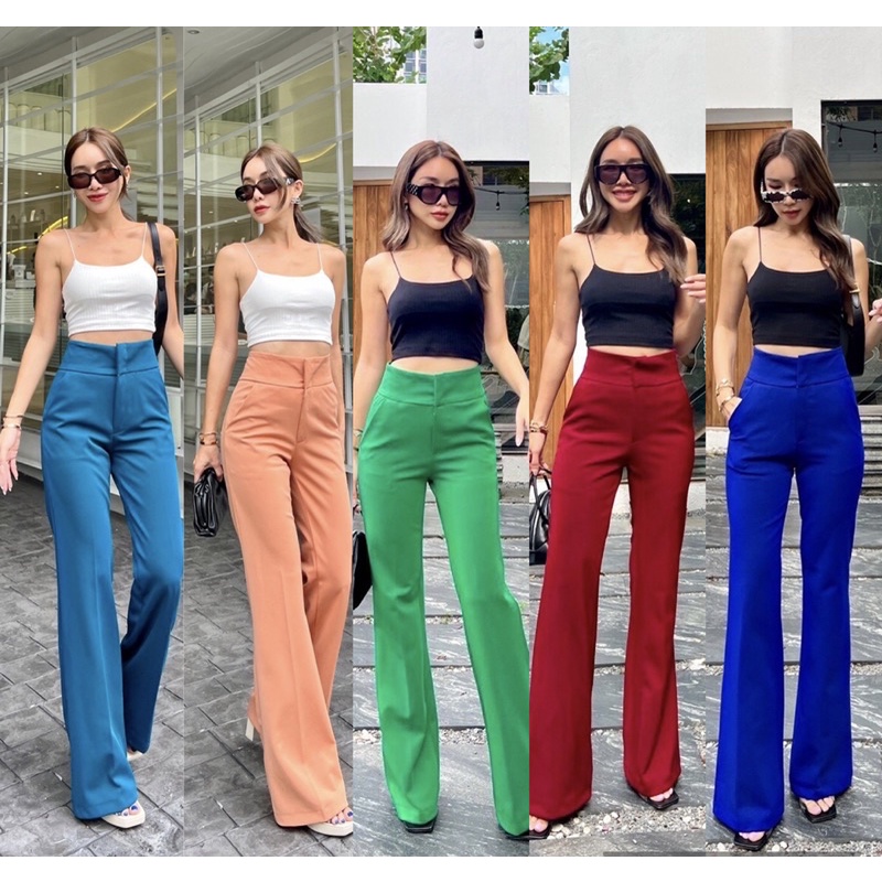 New •P003 กางเกงขาม้า รุ่นตะขอคู่ กางเกงเอวสูงใส่ทำงาน