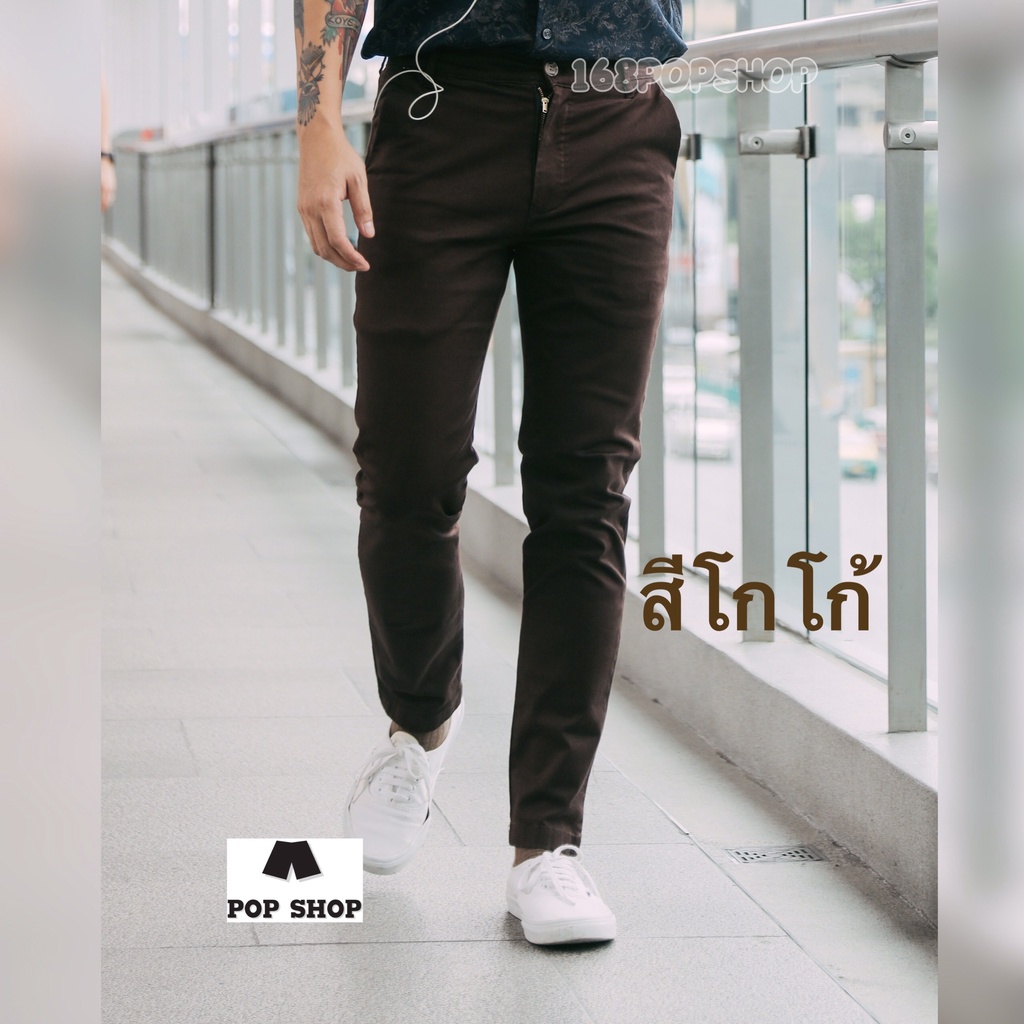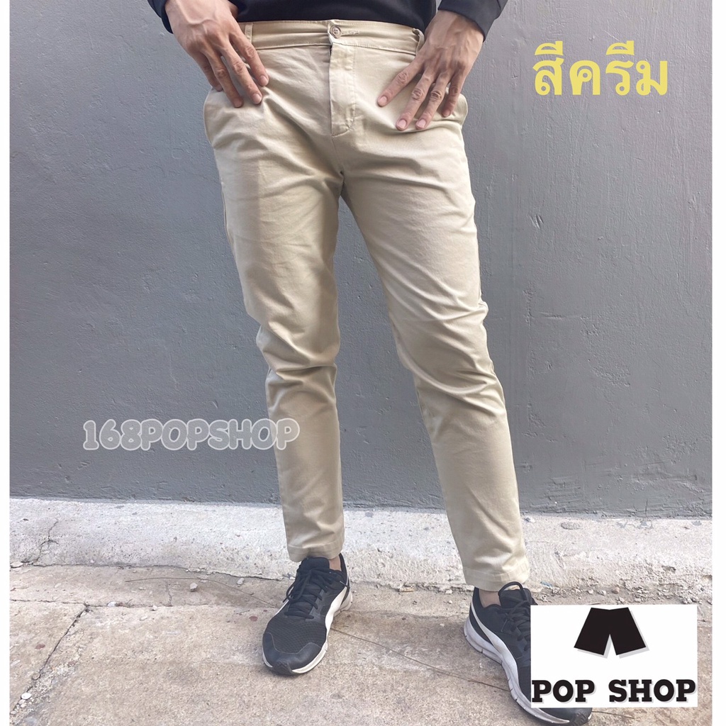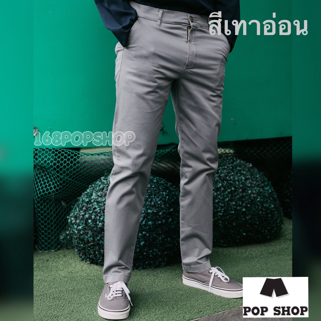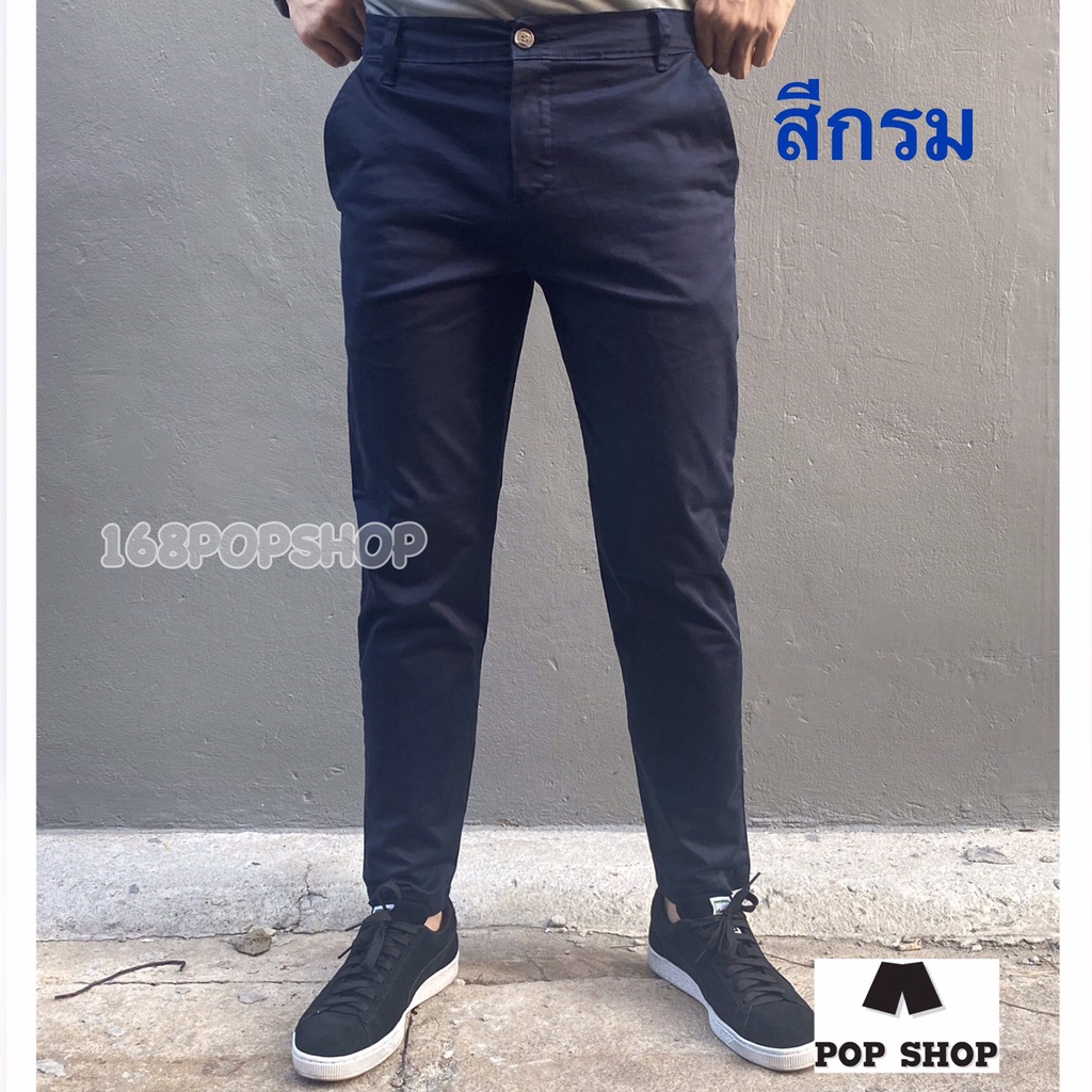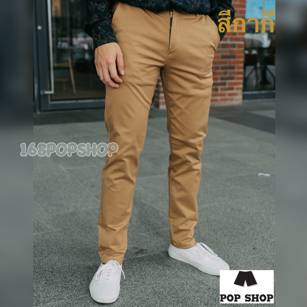 กางเกงขายาวสแลคชิโน่ ผ้ายืด ทรงกระบอกเล็ก Slim Fit ซิปYKK