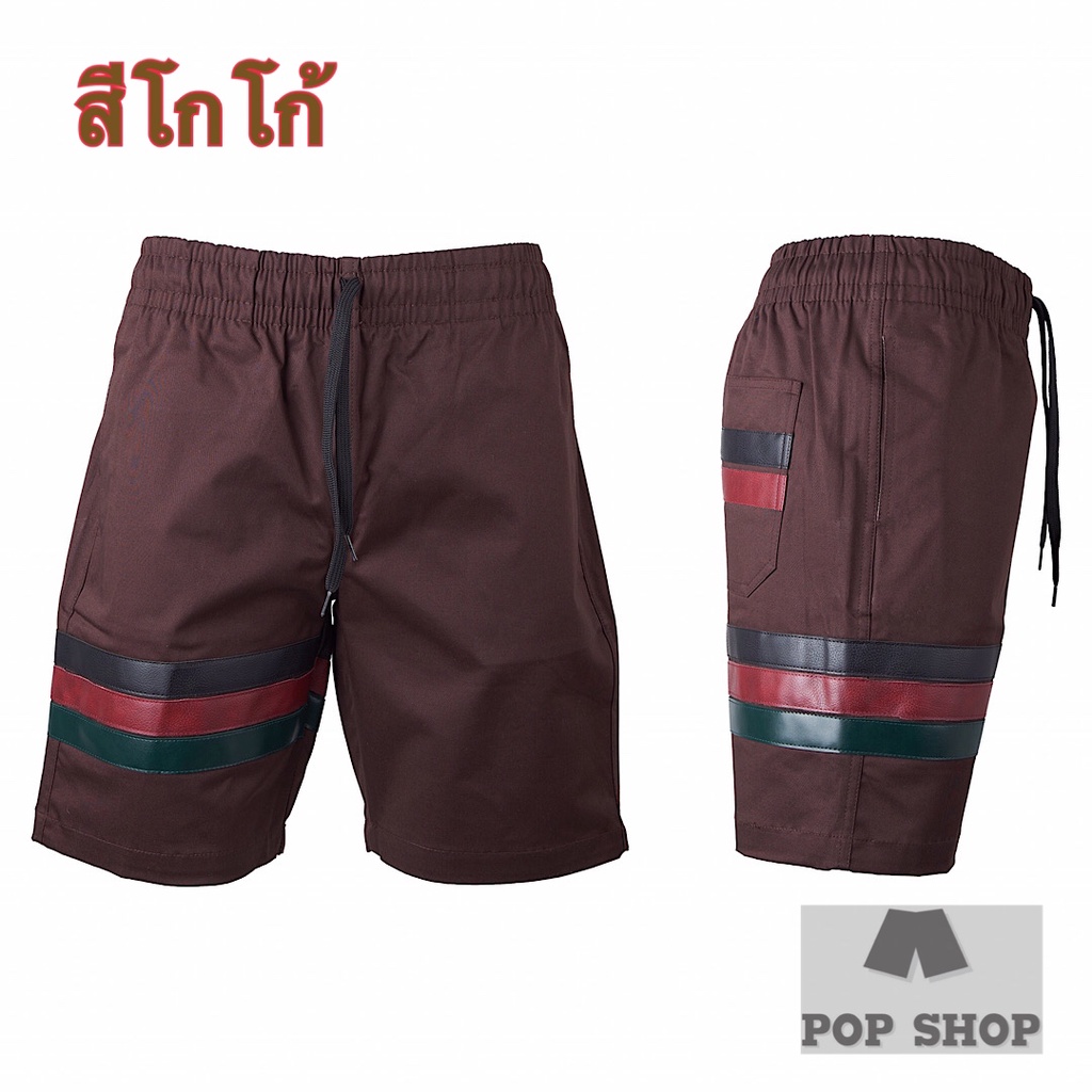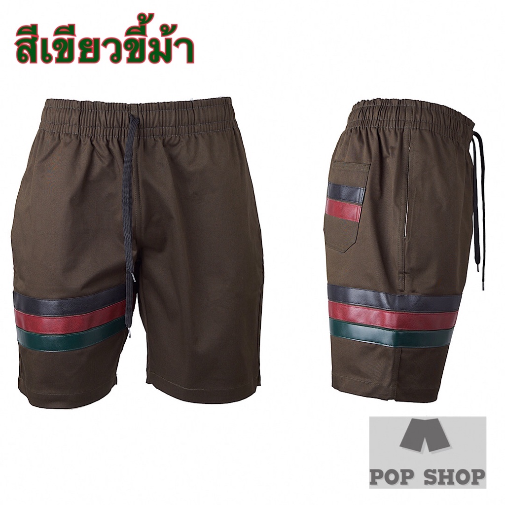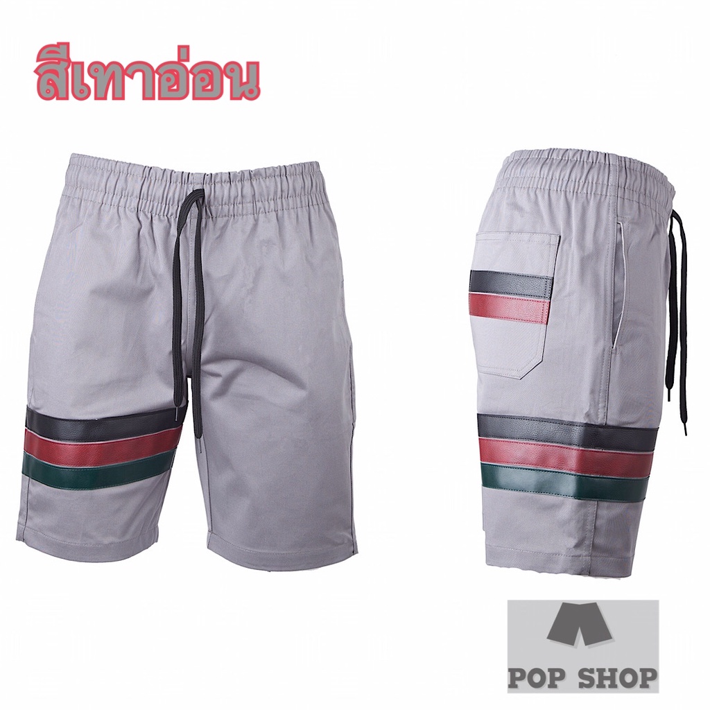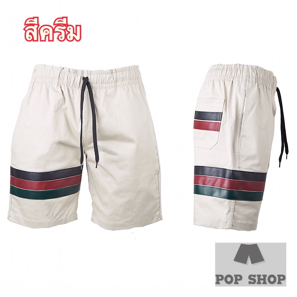 กางเกงขาสั้นเนื้อผ้าชิโน่ แถบหนัง เอวยืด สีไม่ซีด