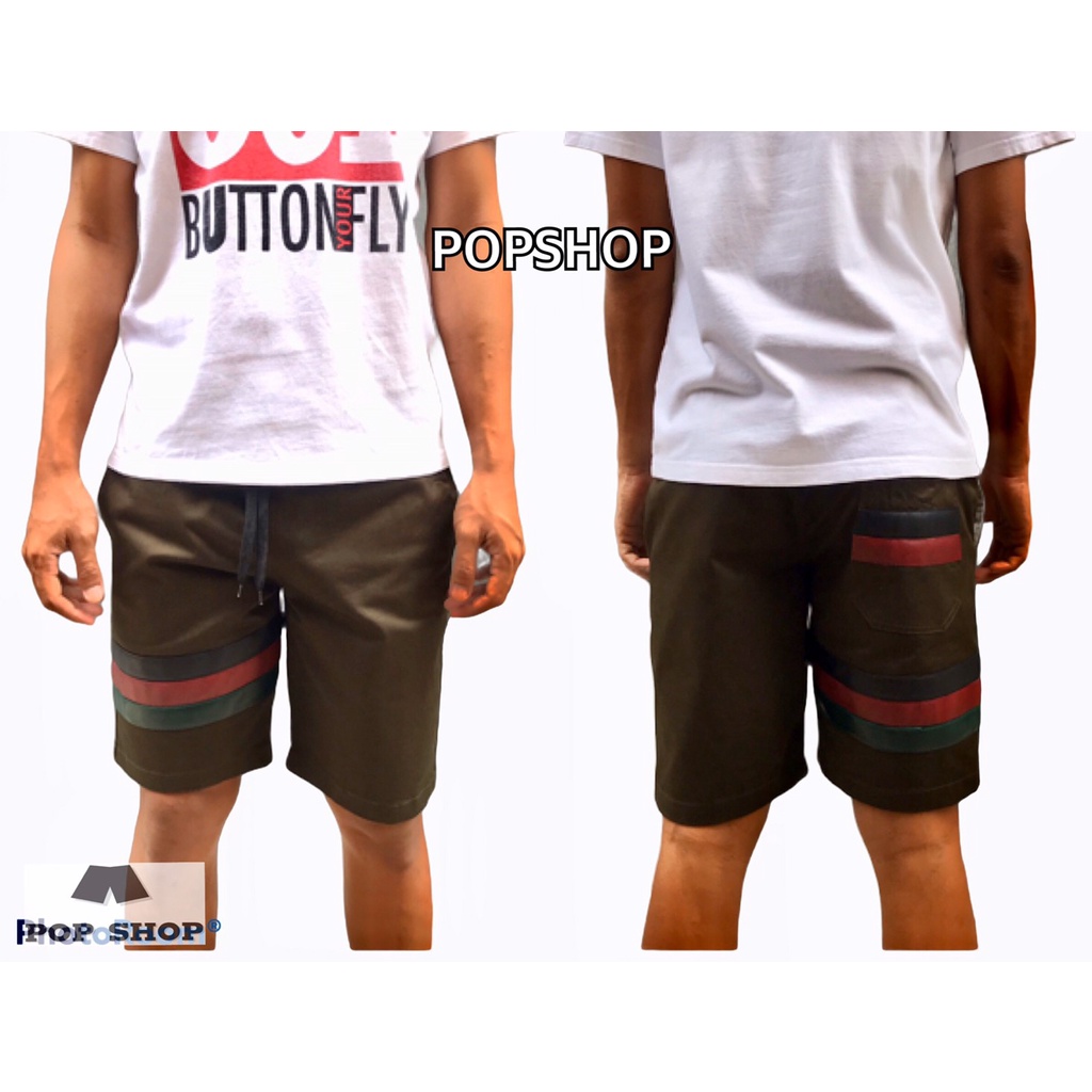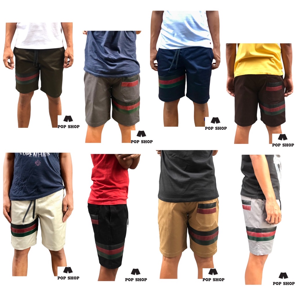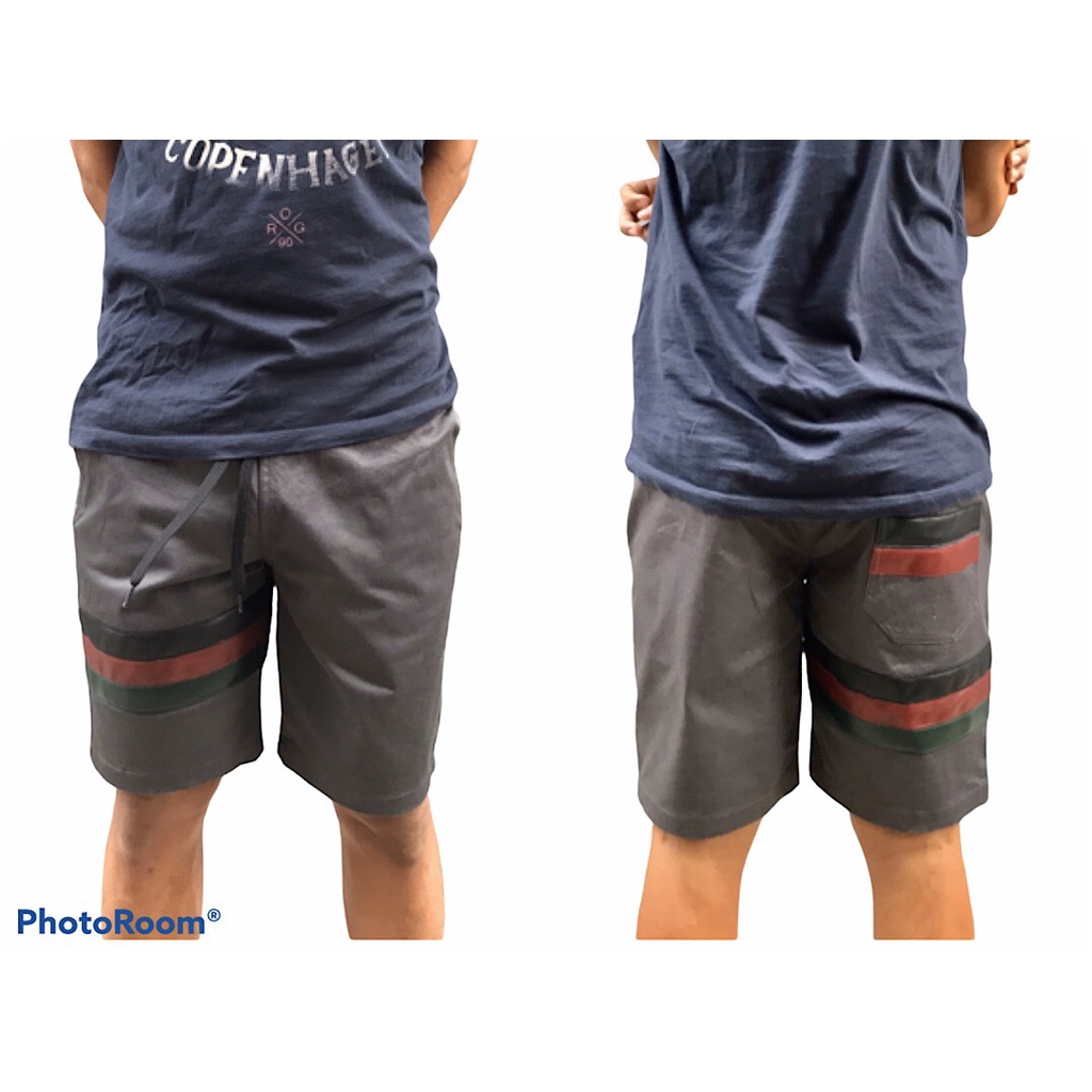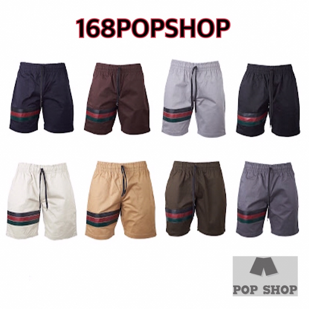 กางเกงขาสั้นเนื้อผ้าชิโน่ แถบหนัง เอวยืด สีไม่ซีด