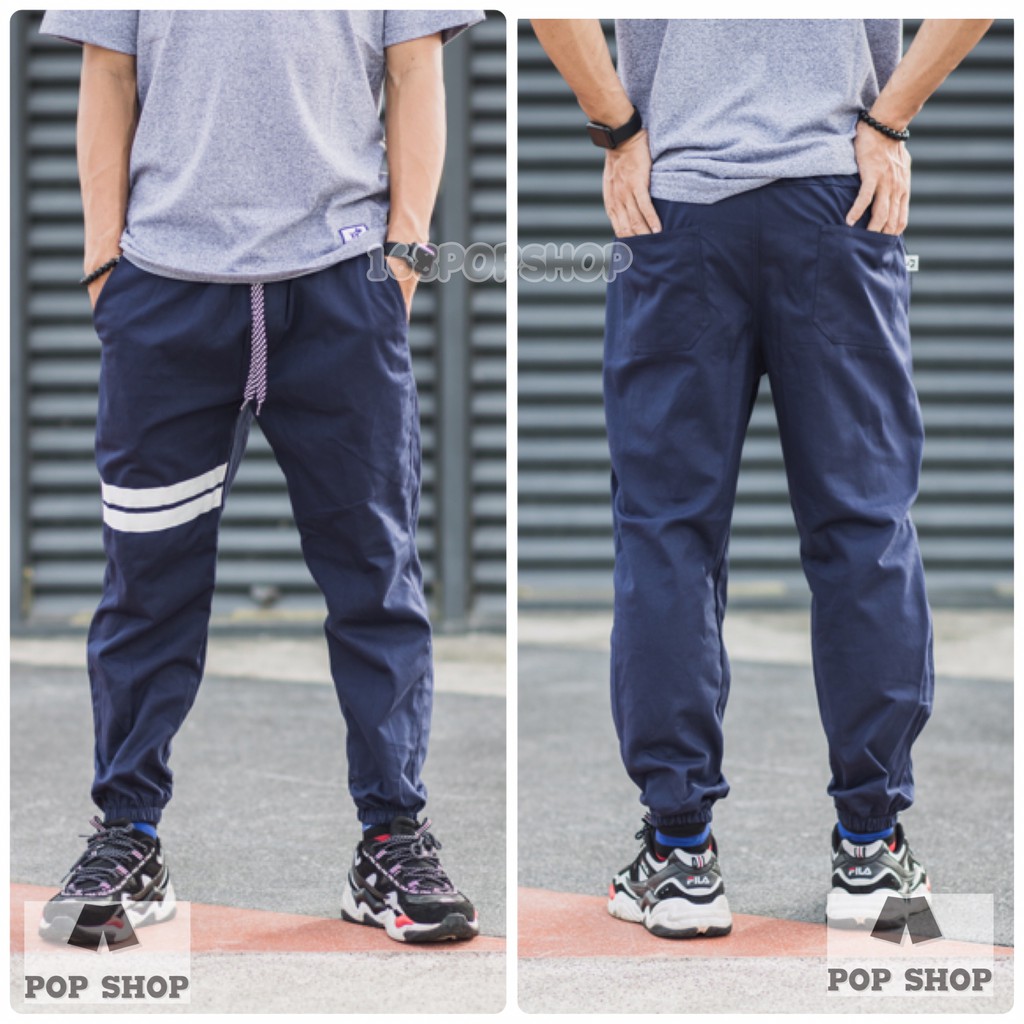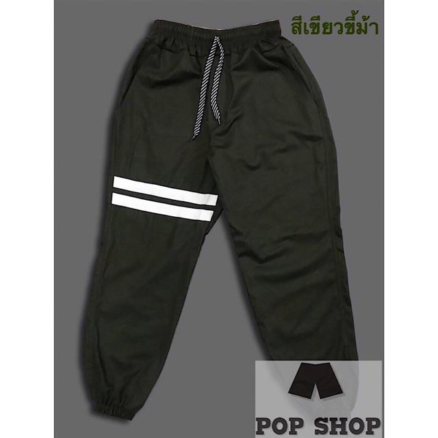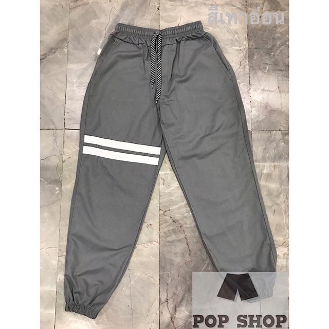 กางเกงขายาวสีสวยๆJogger(ขาจั้ม) แถบผ้าขาวแบบเย็บอย่างดี