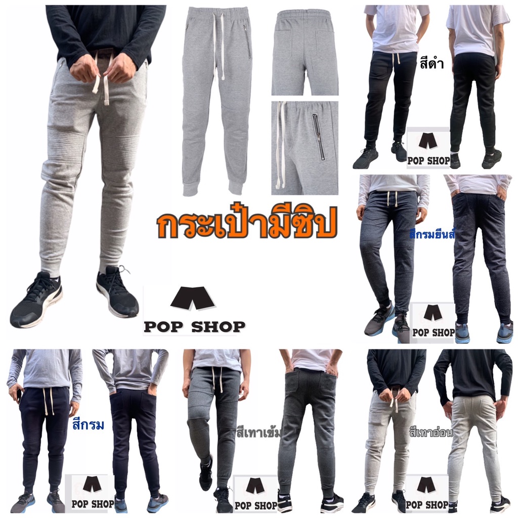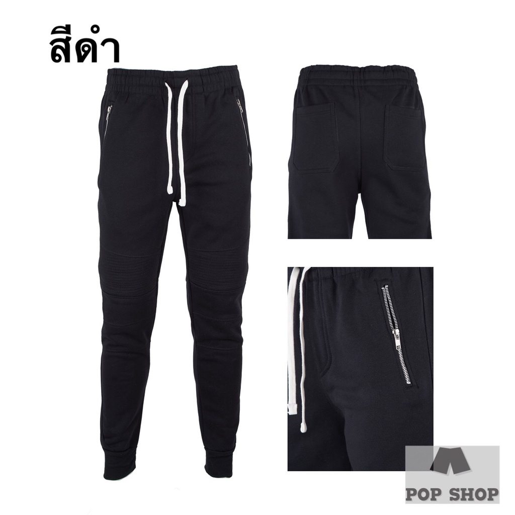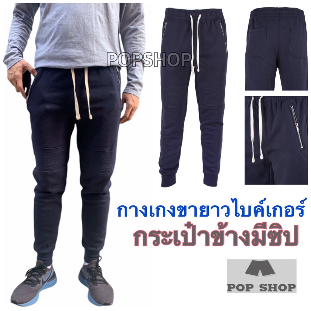 กางเกงขายาวไบค์เกอร์ผ้านิ่ม ใส่สบาย (Jogger) กระเป๋าข้างซ้าย-ขวา มีซิป(ป้องกันมือถือหรือกระเป๋าเงิน ตกหล่นได้ดีเยี่ยม)
