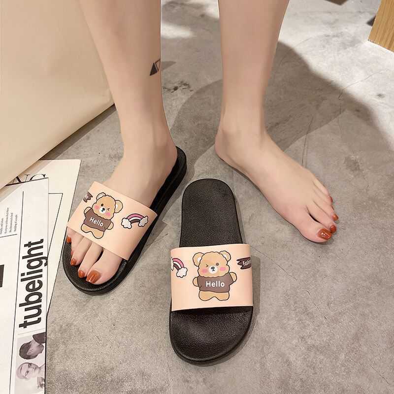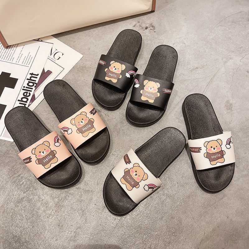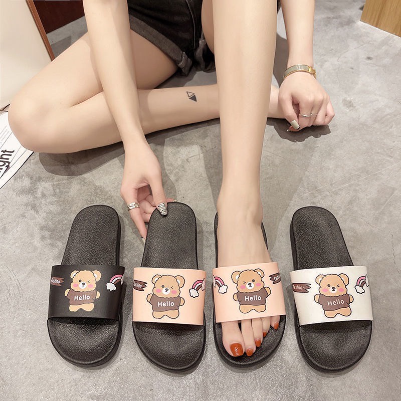 พร้อมส่ง รองเท้าแตะผู้หญิง (หมีHello) รองเท้าแตะยางพื้นนุ่มใส่สบาย (แนะนำให้ซื้อเพิ่ม1เบอร์)