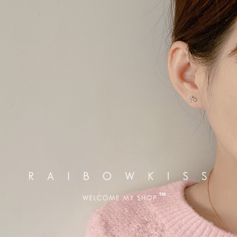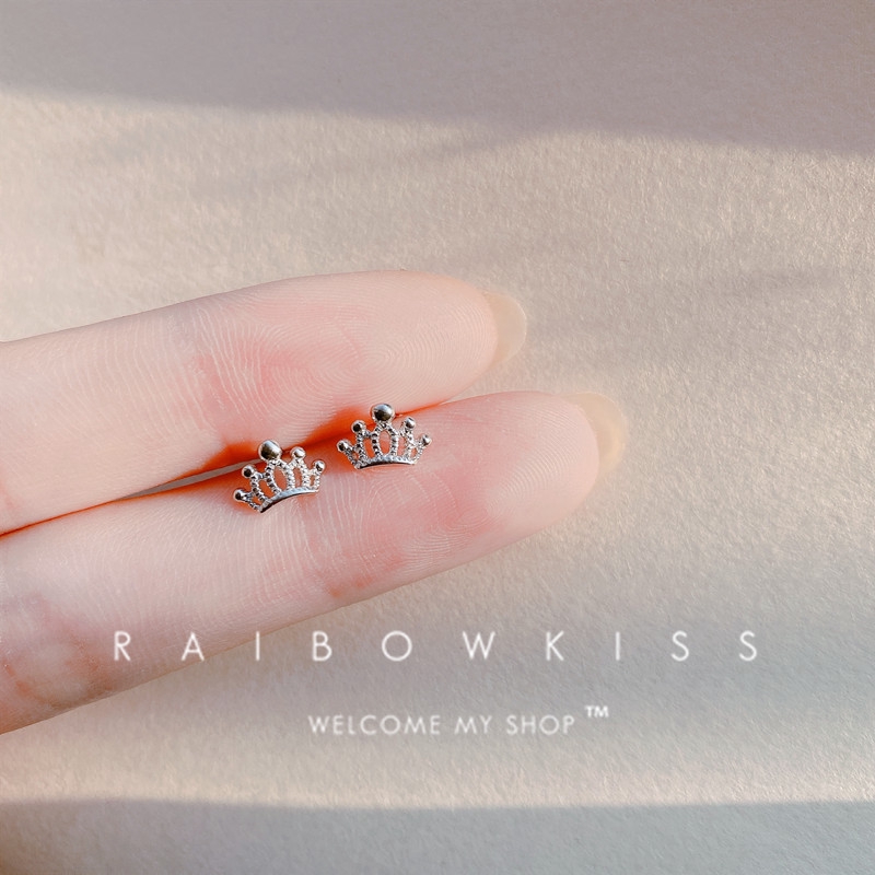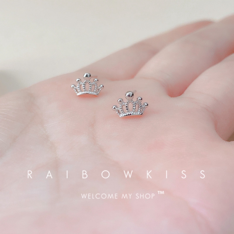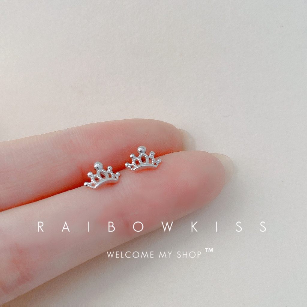 ต่างหูเงิน s925 รูปมงกุฎ สีเงิน ขนาดเล็ก