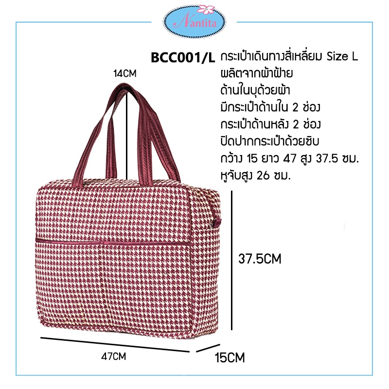 Nantitaกระเป๋าผ้าใบใหญ่ใส่หรับเดินทางผ้าซาติน BS001L