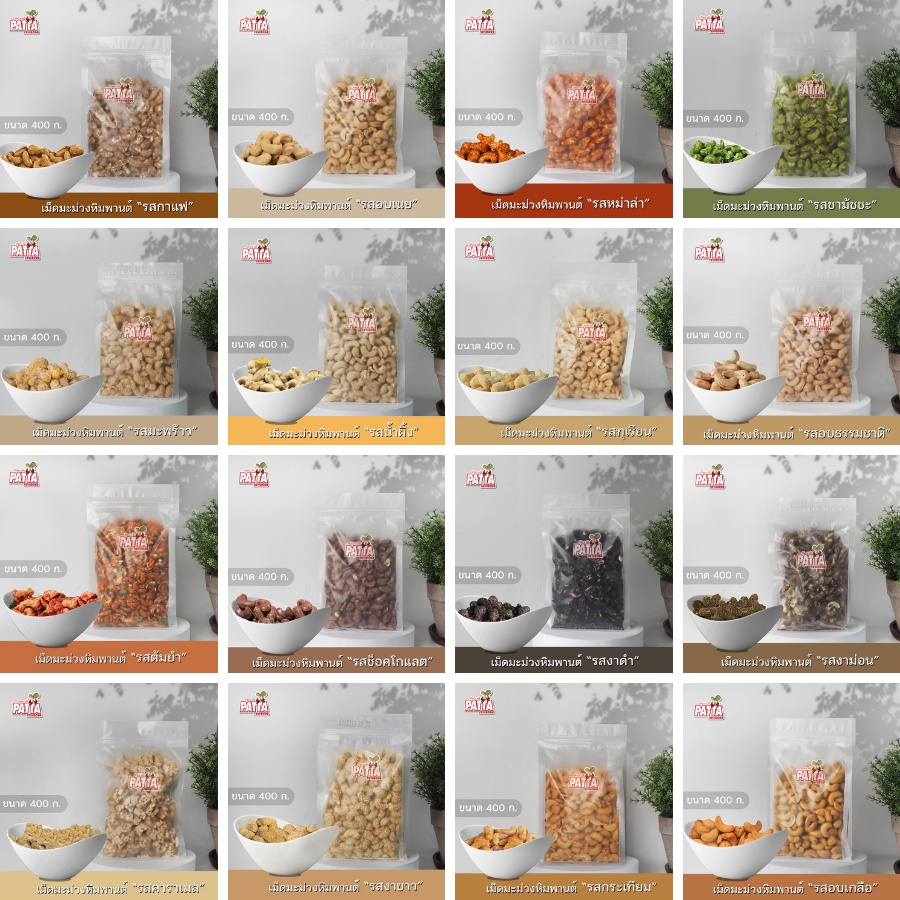 มี อ.ย. เม็ดมะม่วงมินิมอล 400กรัม/ถุง ตราPatta เม็ดมะม่วงหิมพานต์ 16 รสชาติ พรีเมี่ยม เม็ดมะม่วงอบ เม็ดมะม่วง