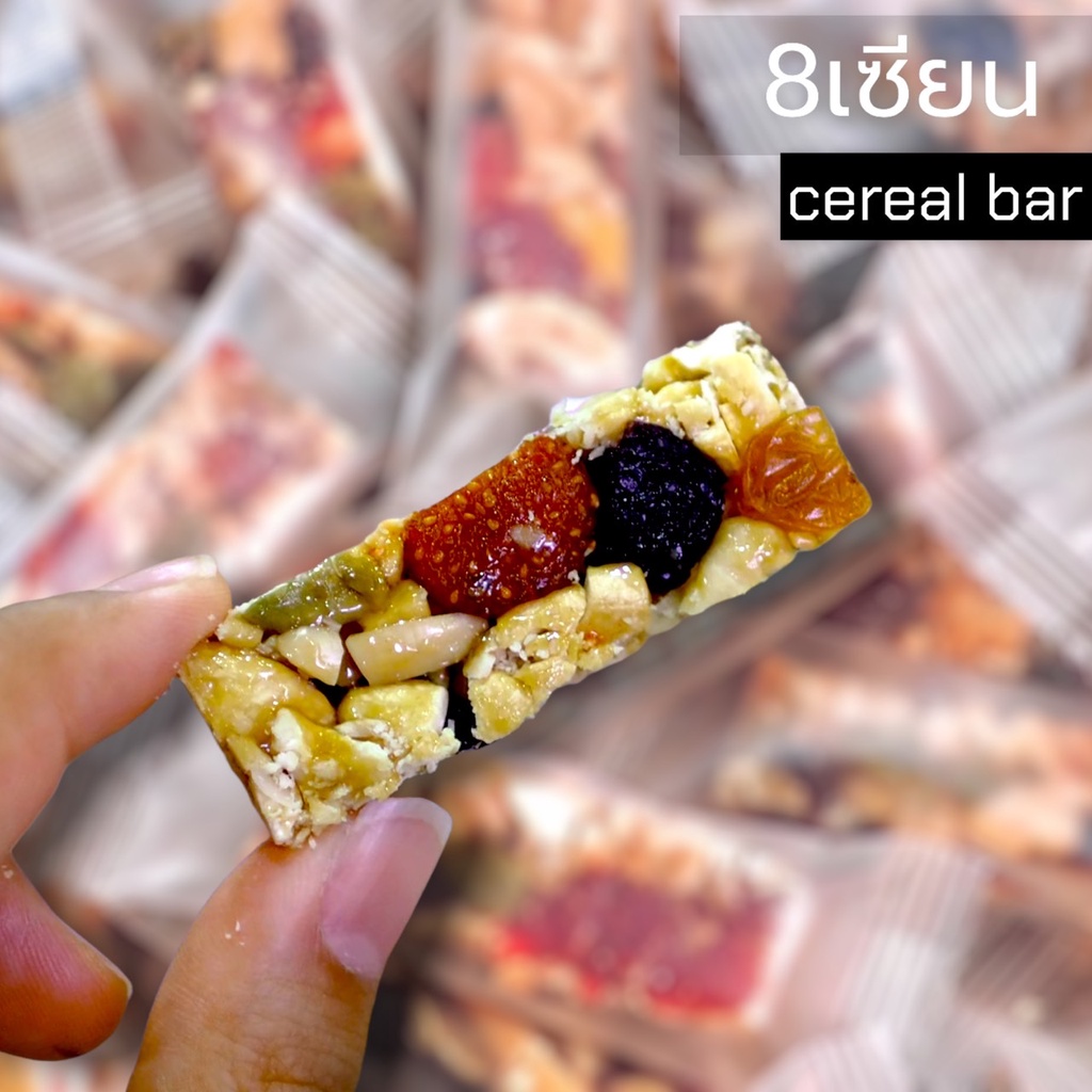 8เซียน(Cereal bar) 齋·حلال หอม กรอบ อร่อย (เม็ดมะม่วง อัลมอน วอลนัท เม็ดฟักทอง มะม่วง สตรอเบอรี่ ลูกเกดแดง ลูกเกดเหลือง)