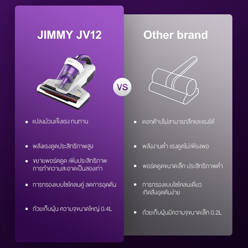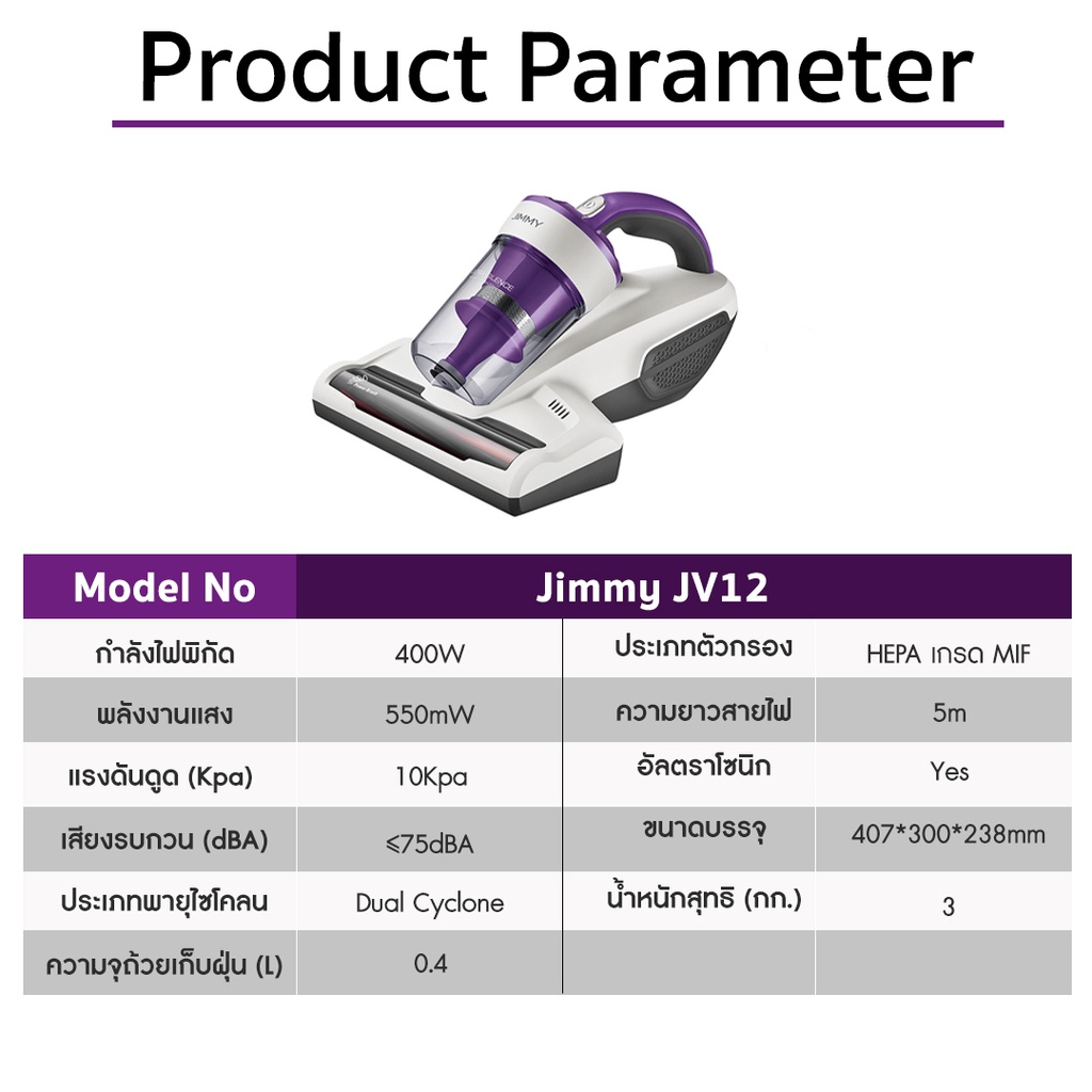 JIMMY JV12 Anti-mite Vacuum Cleaner เครื่องดูดไรฝุ่น แรงดูด กำจัดไรฝุ่นด้วยแสง 99.99%