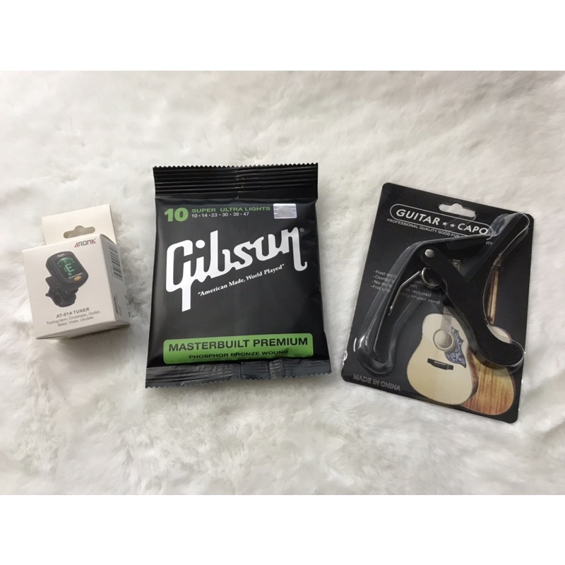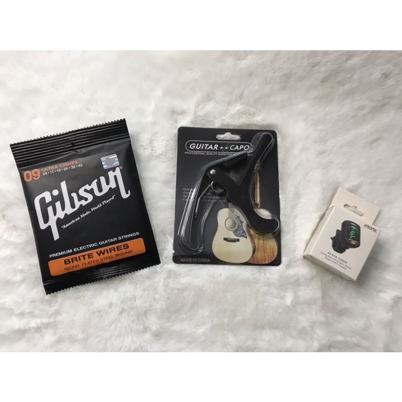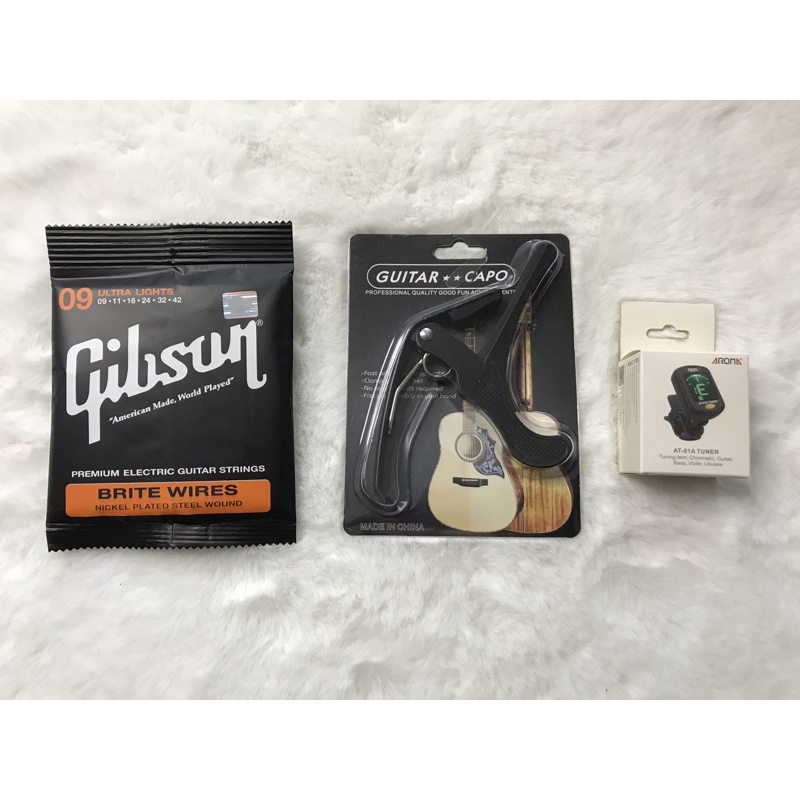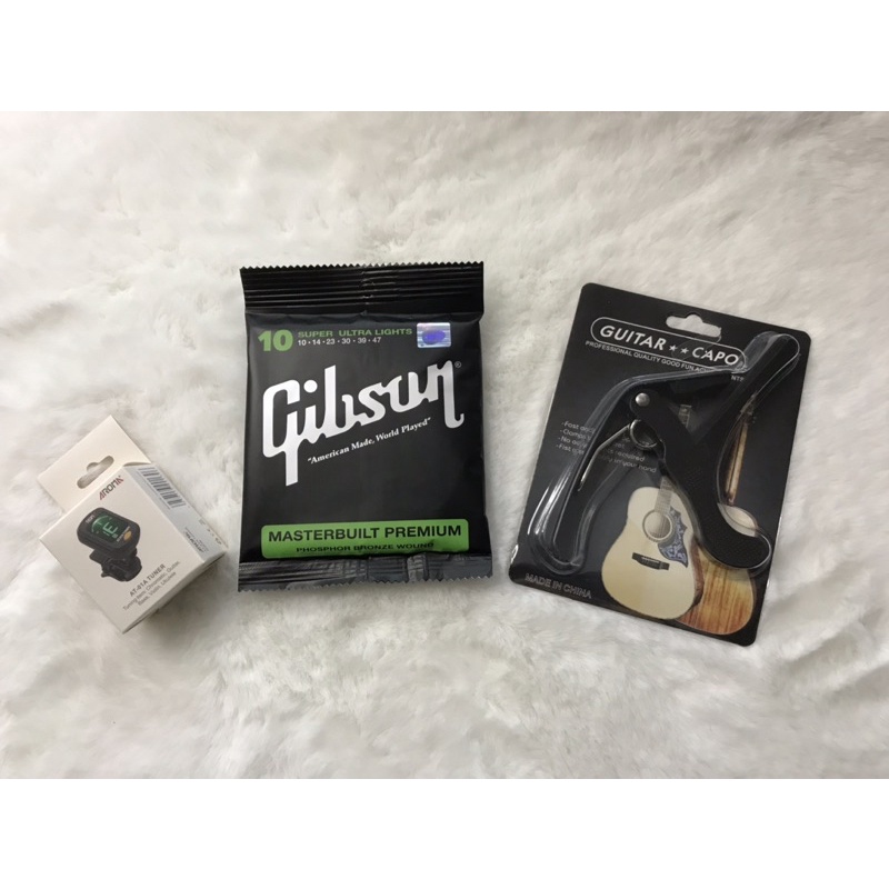 SET 3 ชิ้นสุดคุ้ม 159฿สายกีตาร์โปร่ง,ไฟฟ้า Gibson +คาโก้เหล็กอย่างดี+เครื่องตั้งสาย พร้อมส่งเร็วมาก🚚