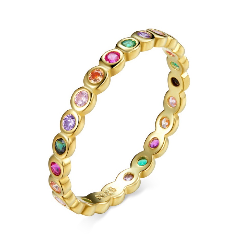 Bamoer Authentic Silver 925 Rainbow Zircon Stackable Band Finger Ring Jewelry For Women & Girls Fit Gifts SCR714