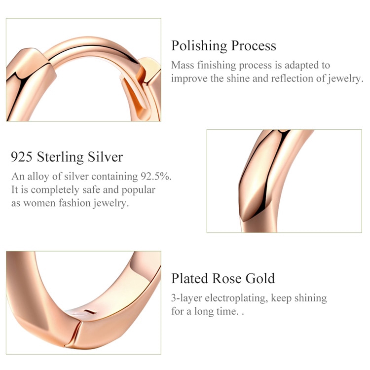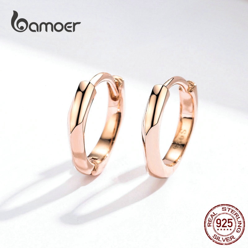 Bamoer ต่างหูห่วงวงกลม เงินแท้ 925 สีโรสโกลด์ สําหรับผู้หญิง