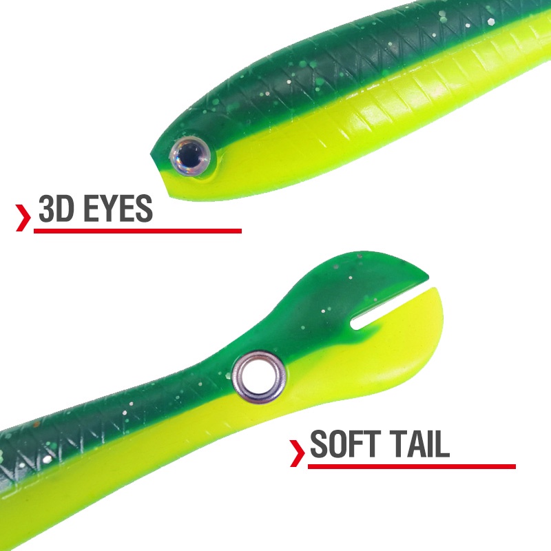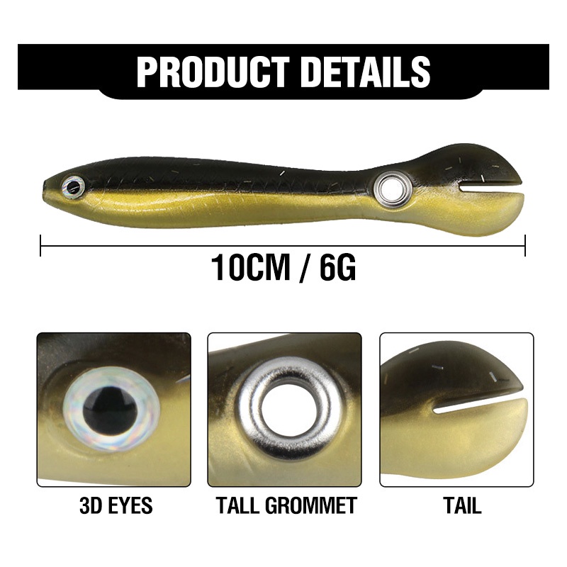 tokushima เหยื่อตกปลาไบโอนิค พลาสติกนิ่ม ตา 3D 5 สี 10 ซม. 6 กรัม