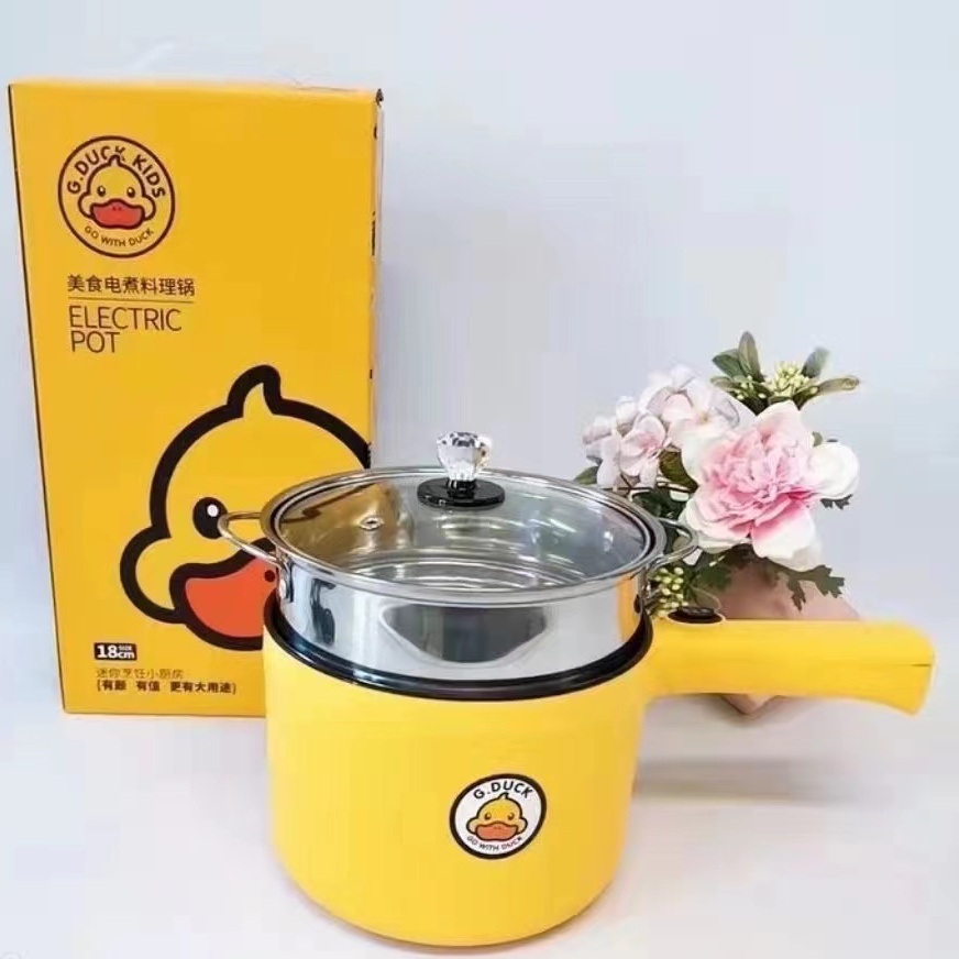 (โค้ด F6YGB9 ลดเพิ่ม 30.-) หม้อไฟฟ้า 1.5L กระทะไฟฟ้าเอนกประสงค์ หม้อไฟฟ้าอุ่น ตุ๋น ต้ม นึ่ง หม้อลายเป็ด
