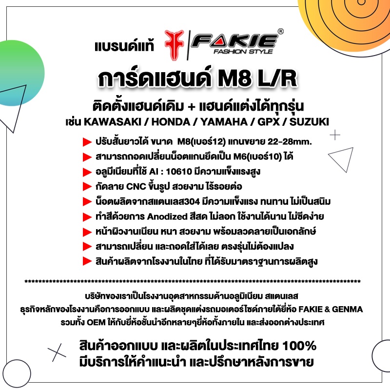 FAKIE การ์ดแฮนด์ M8 L/R ยี่ห้อ MVR1 วัสดุอลูมิเนียม แกนขยาย 22-28mm ติดตั้งแฮนด์แต่ง และแฮนด์เดิมได้ทุกรุ่น สีไม่ซีดง่าย