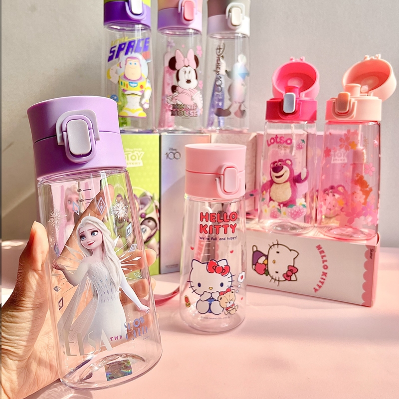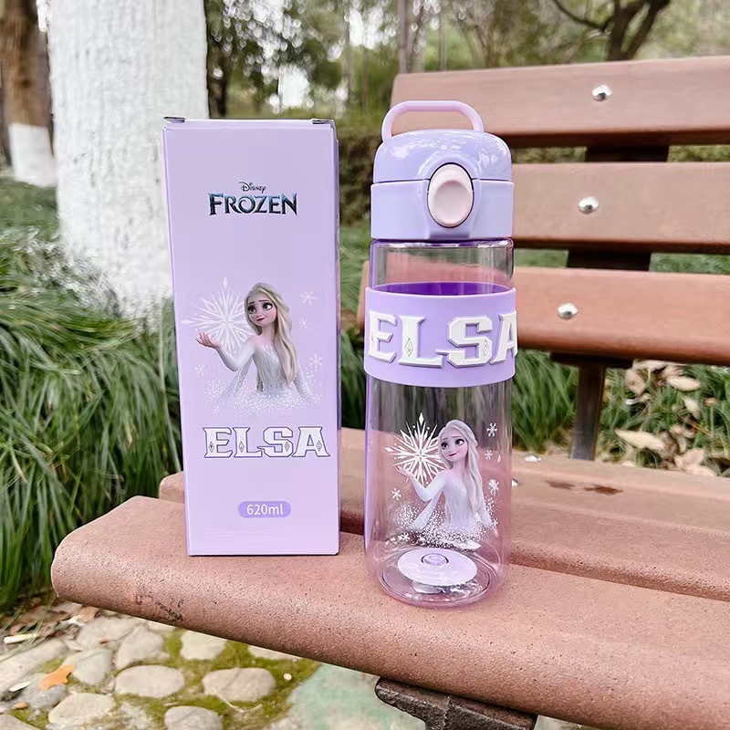 ขวดน้ำเด็กไปโรงเรียน กระติกน้ำพกพาน่ารักๆ 350ml/500ml Tritan Disney Elsa กระบอกน้ำรุ่นยกดื่ม สำหรับเด็กโต