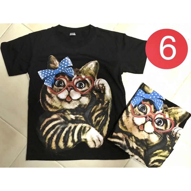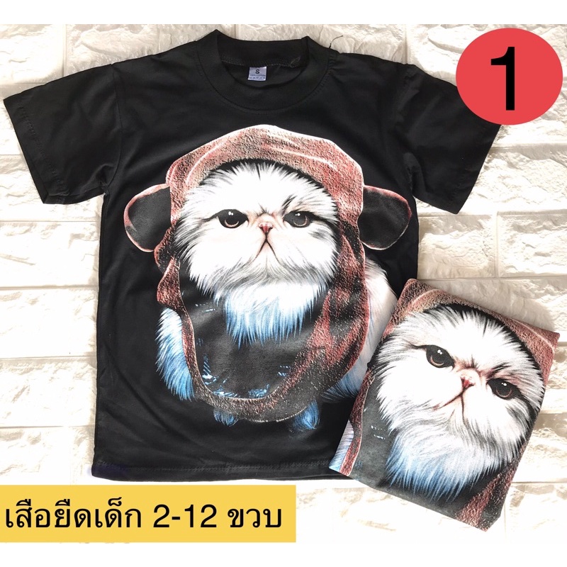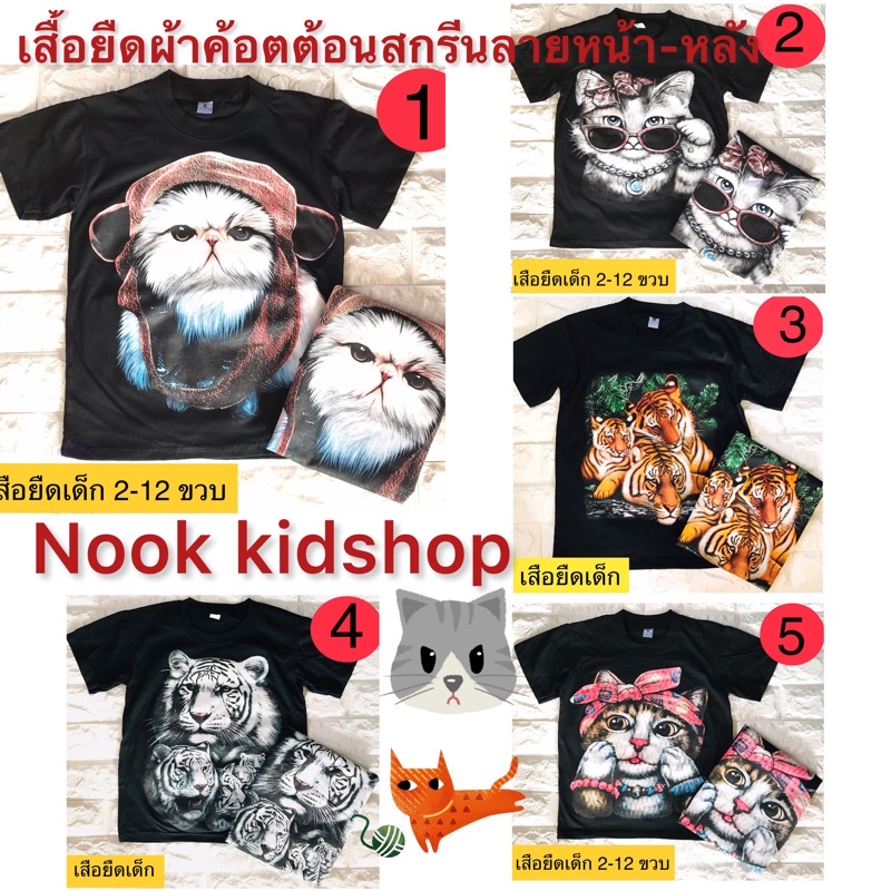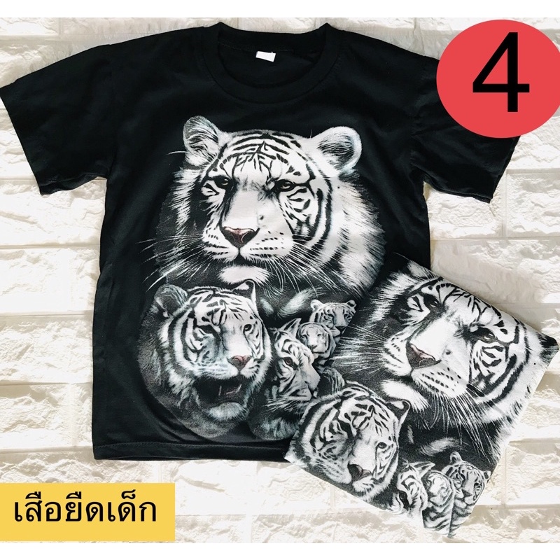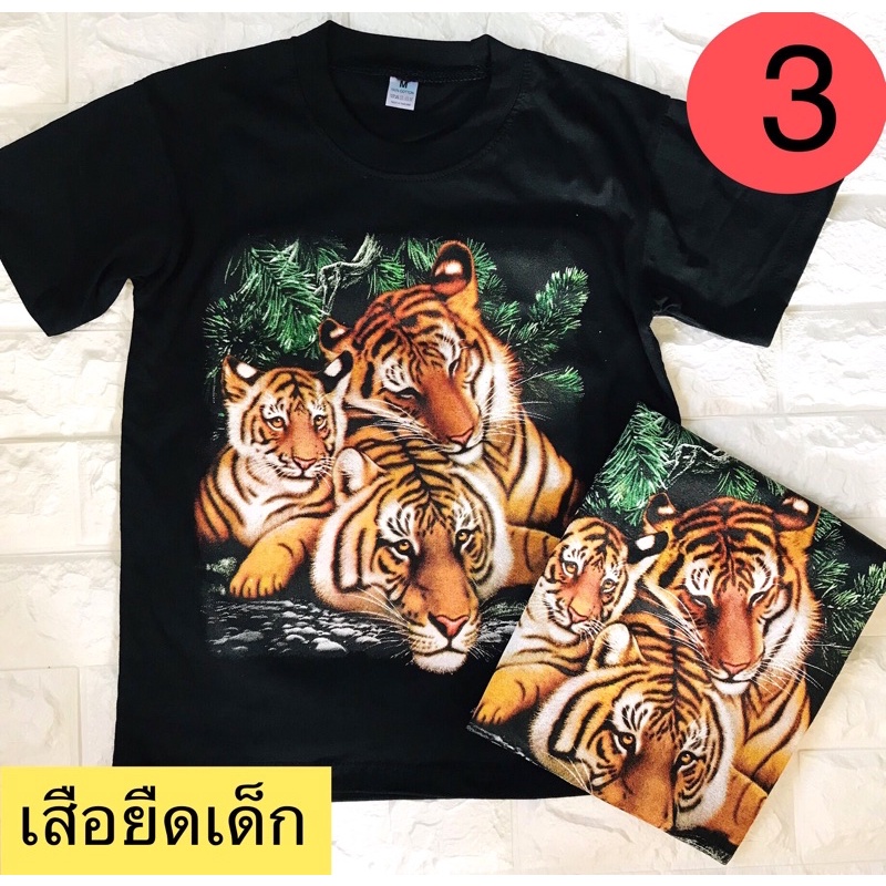 เสื้อยืดเด็ก-เสื้อสกรีนลายแมว-สกรีนลายเสือสุดเท่ห์สกรีนลายหน้า-หลังสกรีนสีพิเศษ (ไม่เรืองแสง)