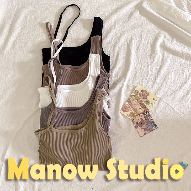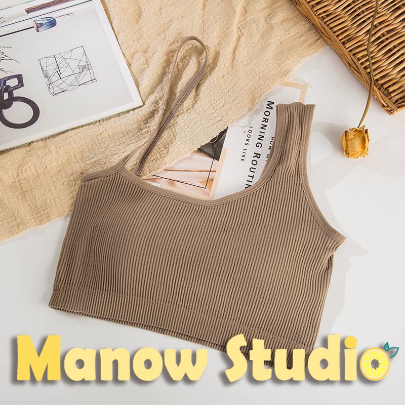 บราสายเดี่ยว สายเดี่ยว บราสายเดี่ยวแบบสวม เสื้อครอป เสื้อกล้าวสาย 2แบบ ผ้าร่อง มีฟองน้ำในตัว 1805# Manow.studio