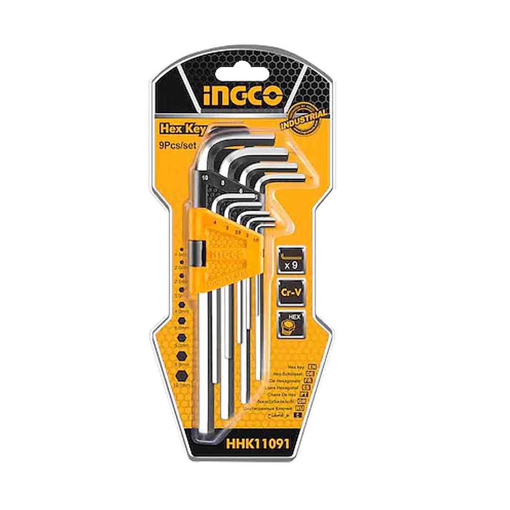 INGCO กุญแจหกเหลี่ยม 9ตัว/ชุด HHK11091