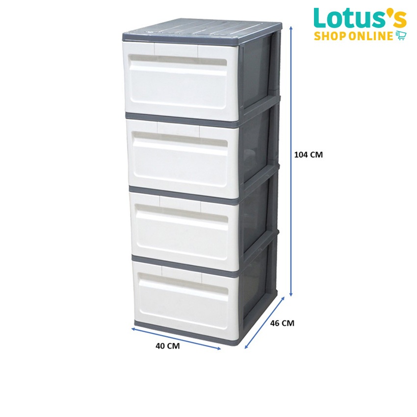 โลตัส ตู้ลิ้นชัก DIY ทรงสูงสีเทาขาว 4 ชั้น ขนาด 40x46x104 ซม. LOTUSS DRAWER SLIM GRAY-WHITE 4 TIERS