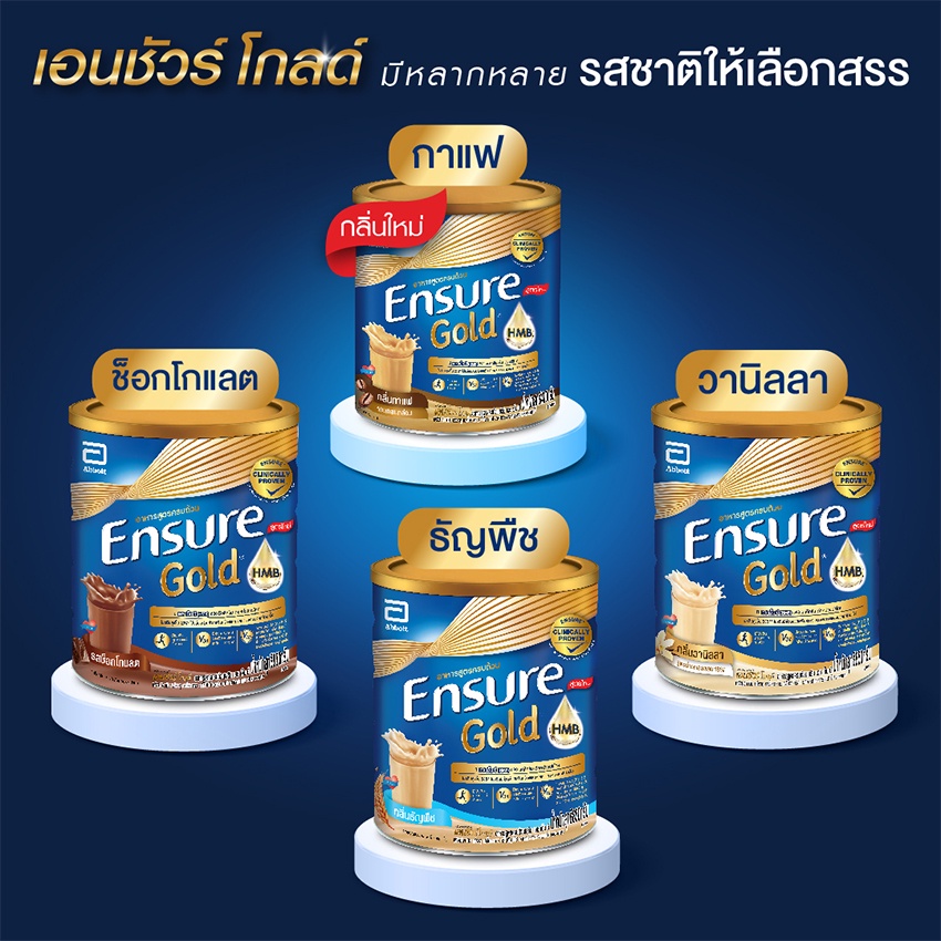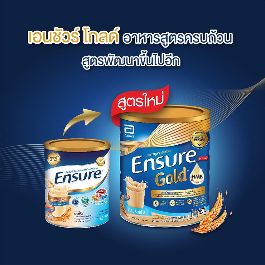 [ทั้งหมด 3 กระป๋อง] เอนชัวร์ อาหารสูตรครบถ้วน กลิ่นธัญพืช สูตรหวานน้อย ชนิดผง ขนาด 800 กรัม ENSURE GOLD WHEAT 800 G.
