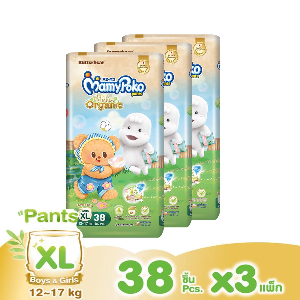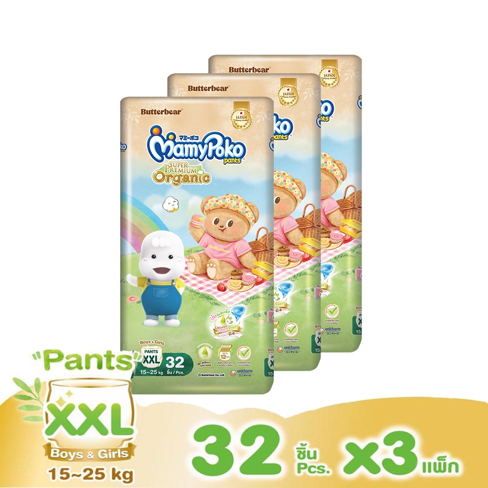 [ทั้งหมด 3 แพ็ค] มามี่โพโค กางเกงผ้าอ้อมเด็ก แพ้นท์ ออร์แกนิคคอตตอน MAMYPOKO MAMYPOKO PANTS ORGANIC