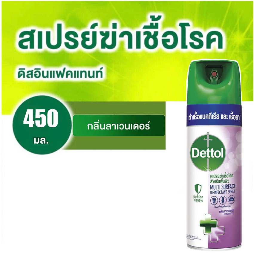[ทั้งหมด 2 ชิ้น] เดทตอล สเปรย์ฆ่าเชื้อโรค ดิสอินเฟคแทนท์ กลิ่น ลาเวนเดอร์ 450 มล. DETTOL DISINFECTANT SPRAY LAVENDER