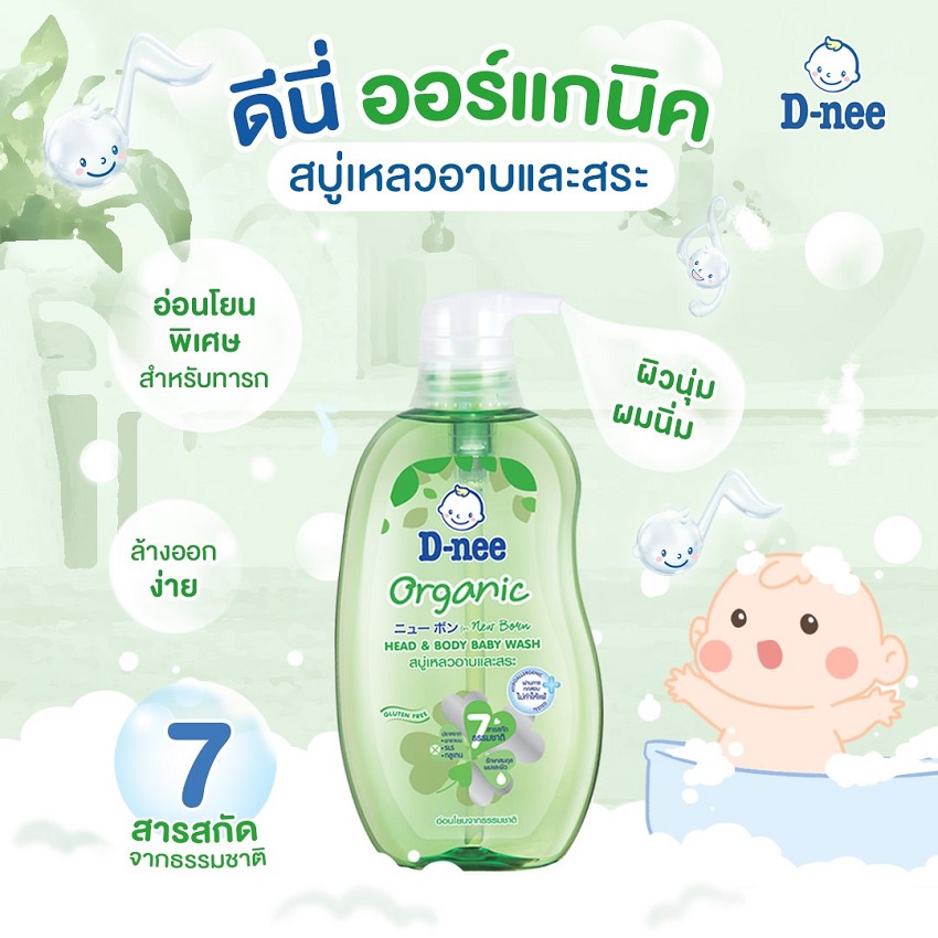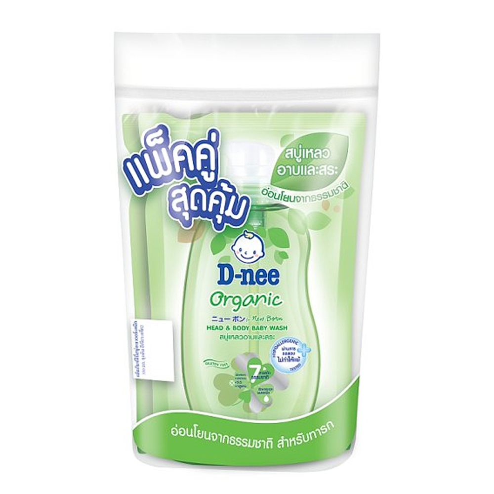 ดีนี่ ออร์แกนิค สบู่เหลว อาบและสระผม ขนาด 350 มล. (แพ็ค 2 ถุง) D-NEE ORGARIC HEAD & BODY BABY WASH 350 ML. PACK 2 BAGS.