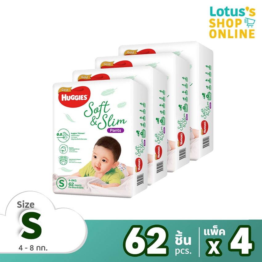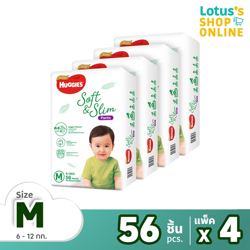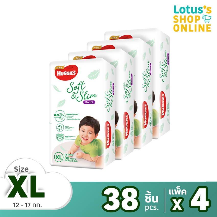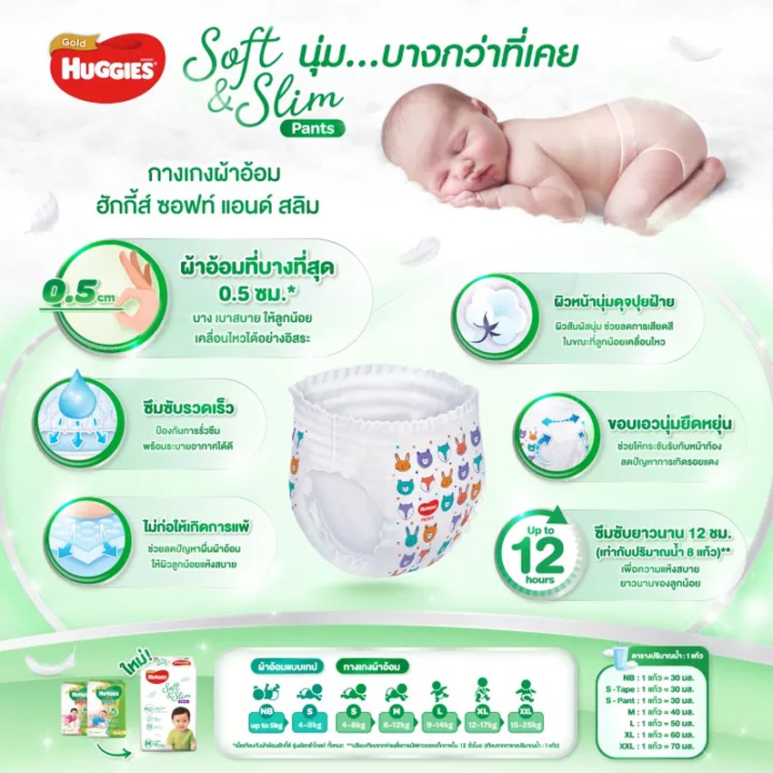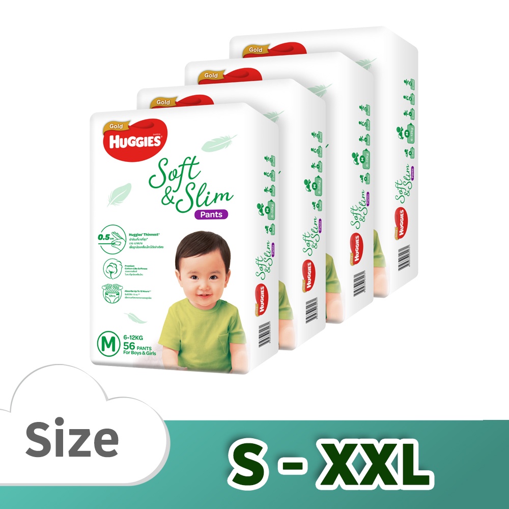 [ขายยกลัง! รวม 4 แพ็ค] ฮักกี้ส์® กางเกงผ้าอ้อมเด็ก โกลด์ ซอฟท์แอนด์สลิม HUGGIES PANTS GOLD SOFT&SLIM