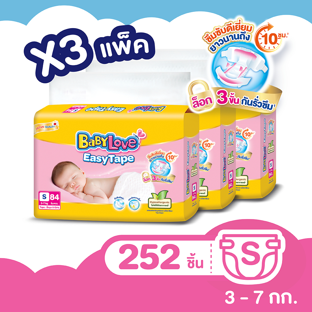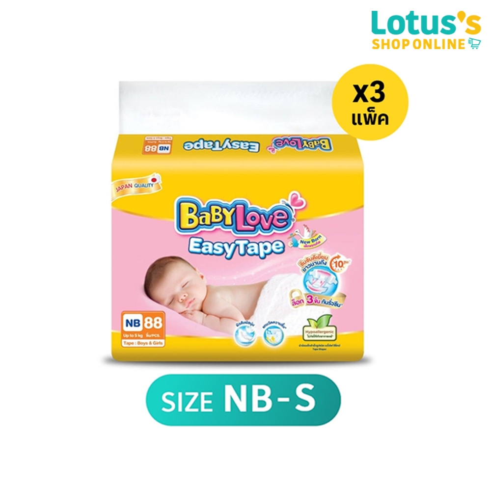 [ขายยกลัง รวม 3 แพ็ค] เบบี้เลิฟ ผ้าอ้อมเด็กแบบเทป อีซี่เทป ไซส์ NB-S BABYLOVE EASYTAPE SIZE NB-S