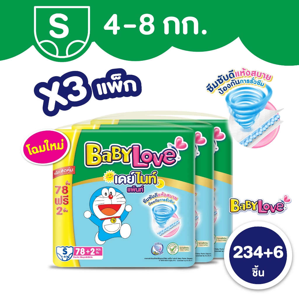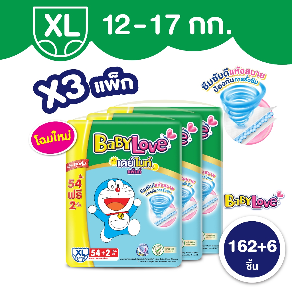[ขายยกลัง รวม3แพ็ค] เบบี้เลิฟ กางเกงผ้าอ้อมเด็ก เดย์ไนท์แพ้นส์ ซุปเปอร์จัมโบ้ ไซส์ S-3XL. BABYLOVE DAY NIGHT PANTS