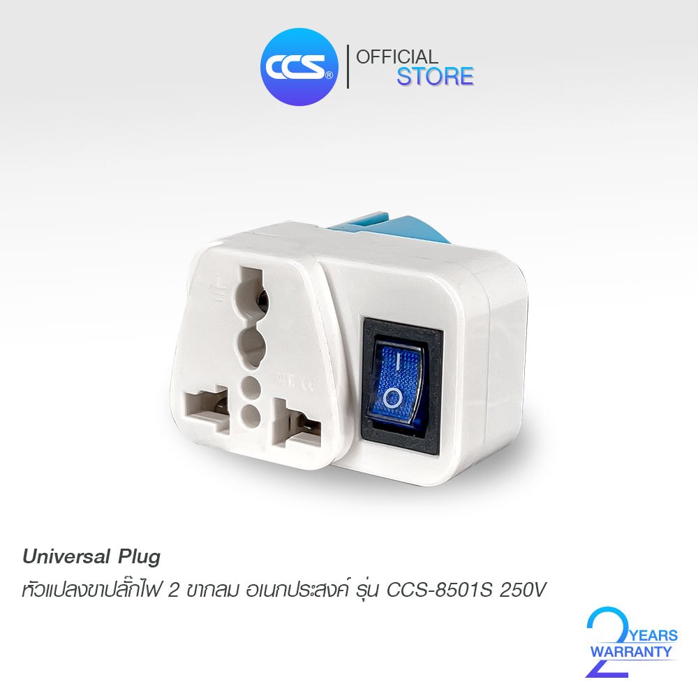 หัวปลั๊กแปลงขาปลั๊กไฟ 2 ขากลมอเนกประสงค์ มีสวิตช์ เปิด-ปิด รุ่น CCS8501S 10A 250V แบรนด์ CCS
