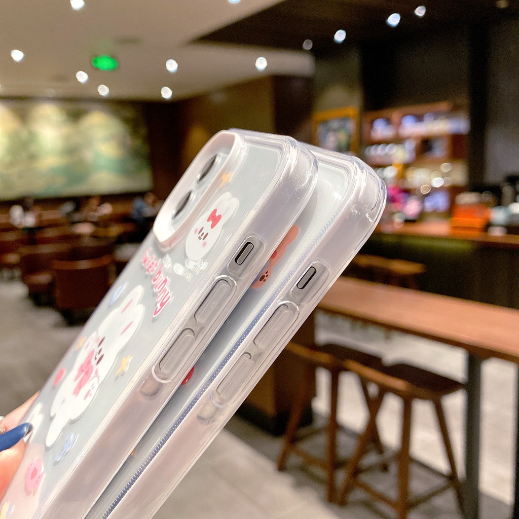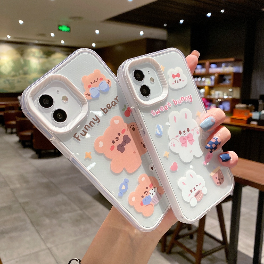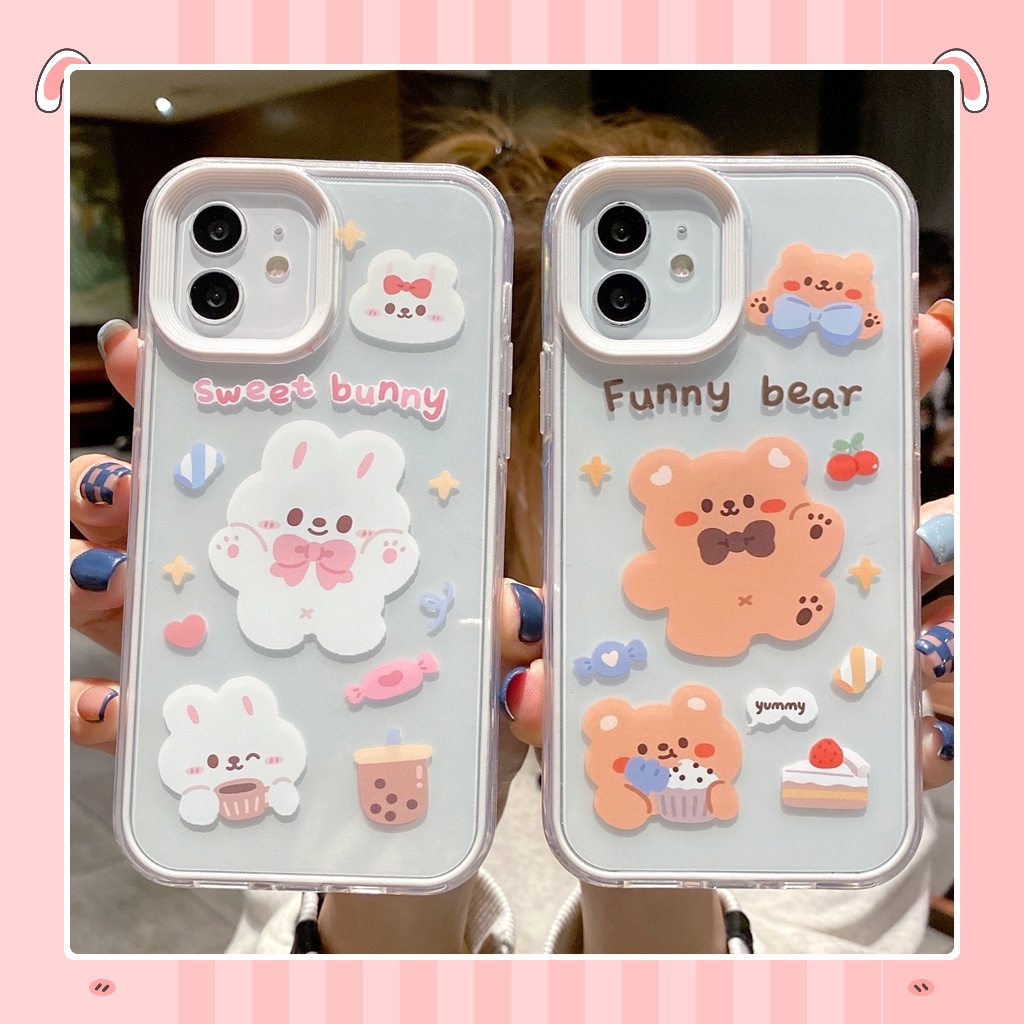 โปร่งใสกระต่ายสีขาวหมีสีน้ําตาลเข้ากันได้สําหรับกรณี iphone 16 15 14 6s 7 8 plus XR 11 12 13 pro max 2 ใน 1 super drop ความต้านทานหนา