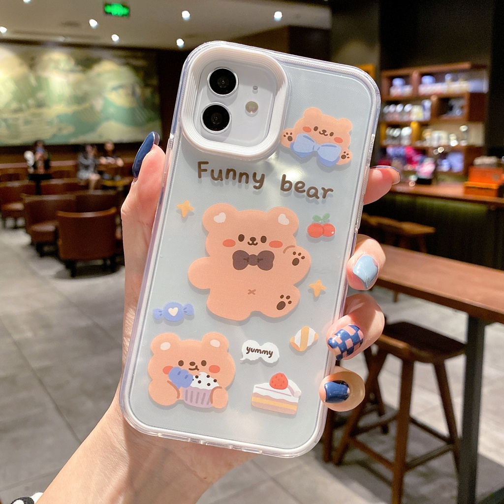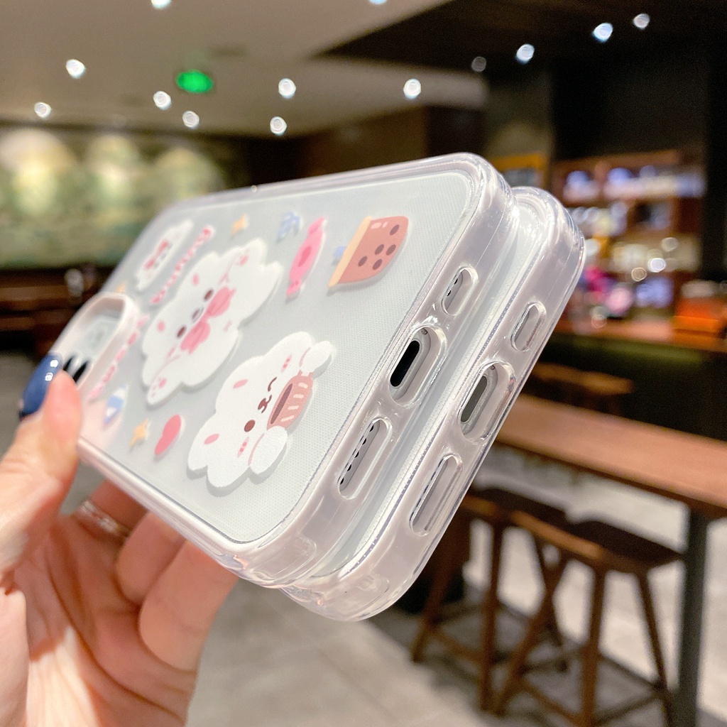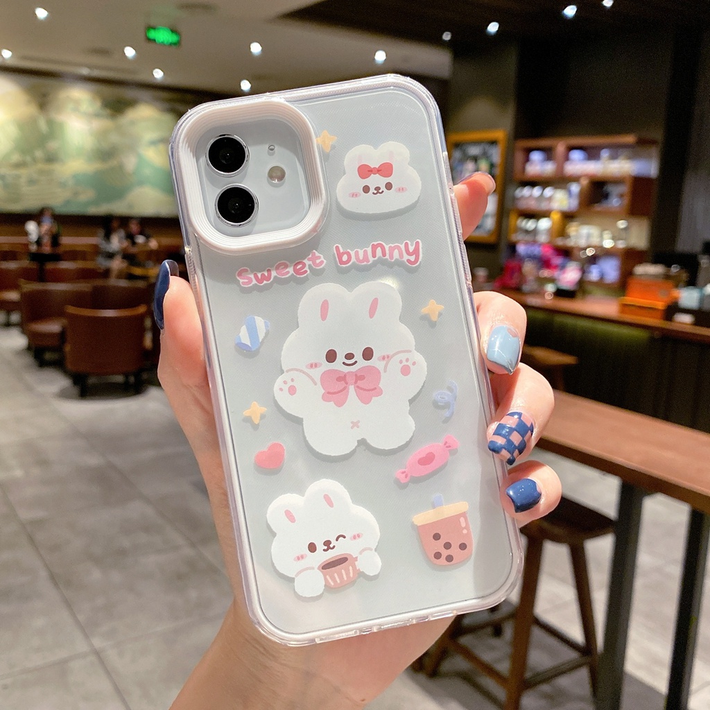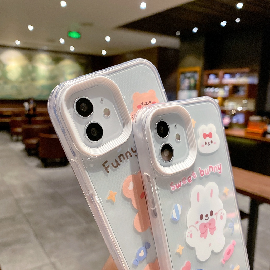 โปร่งใสกระต่ายสีขาวหมีสีน้ําตาลเข้ากันได้สําหรับกรณี iphone 16 15 14 6s 7 8 plus XR 11 12 13 pro max 2 ใน 1 super drop ความต้านทานหนา