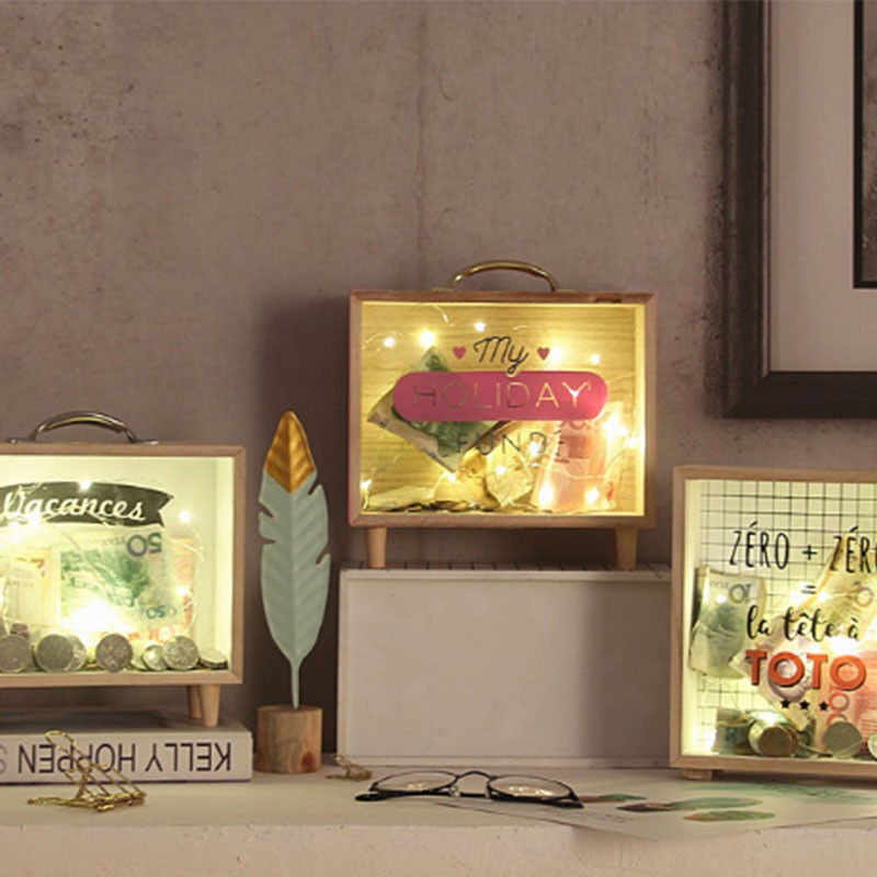 กระปุกออมสินไม้ สไตล์วินเทจ สำหรับงานแต่งงาน ของตกแต่งบ้าน ของขวัญคริสต์มาส
