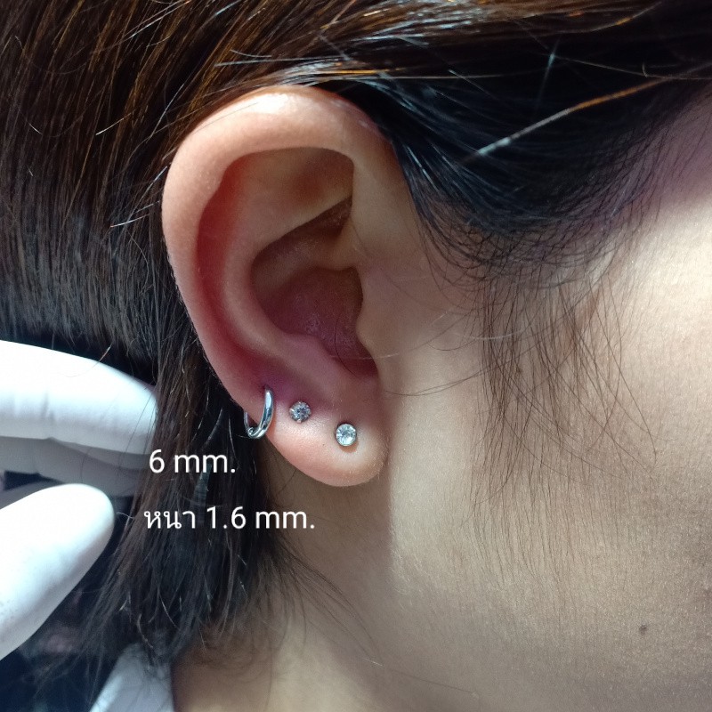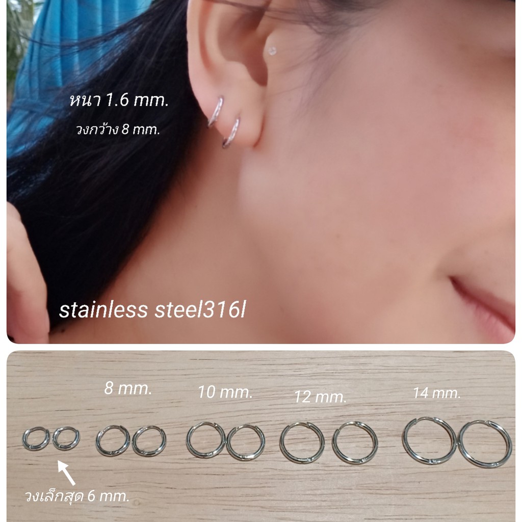 STR จิวหูห่วงสแตนเลสหนา 1.6 mm.สำหรับคนแพ้ง่าย ราคา 1 ชิ้น