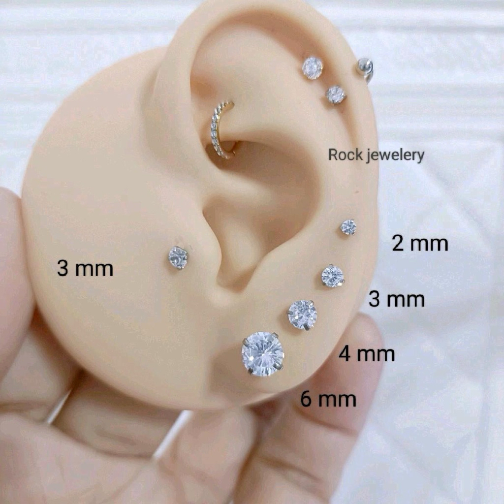 BBCZ2❤️จิวหูเพชรกลม ดาว สแตนเลสก้านหนา 0.8ยาว 6mm. ( ราคา 1 คู่ )
