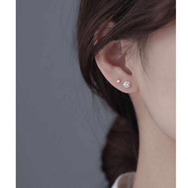 SVCZ(silver 925) ต่างหูเพชร CZ เงินแท้ หนามเตยฟันปลา (ราคาต่อ 1คู่)