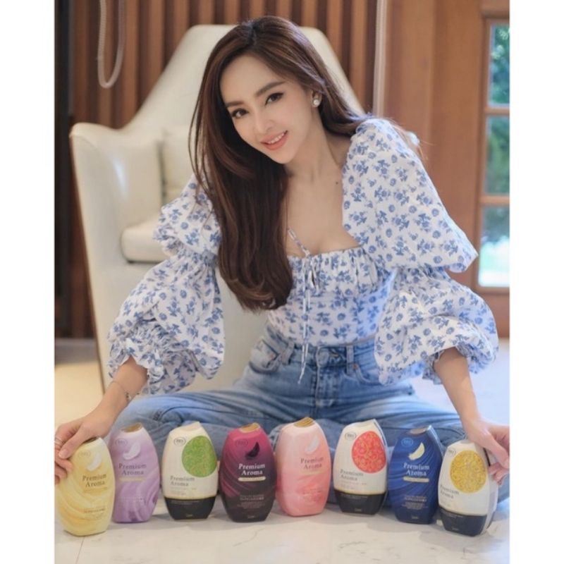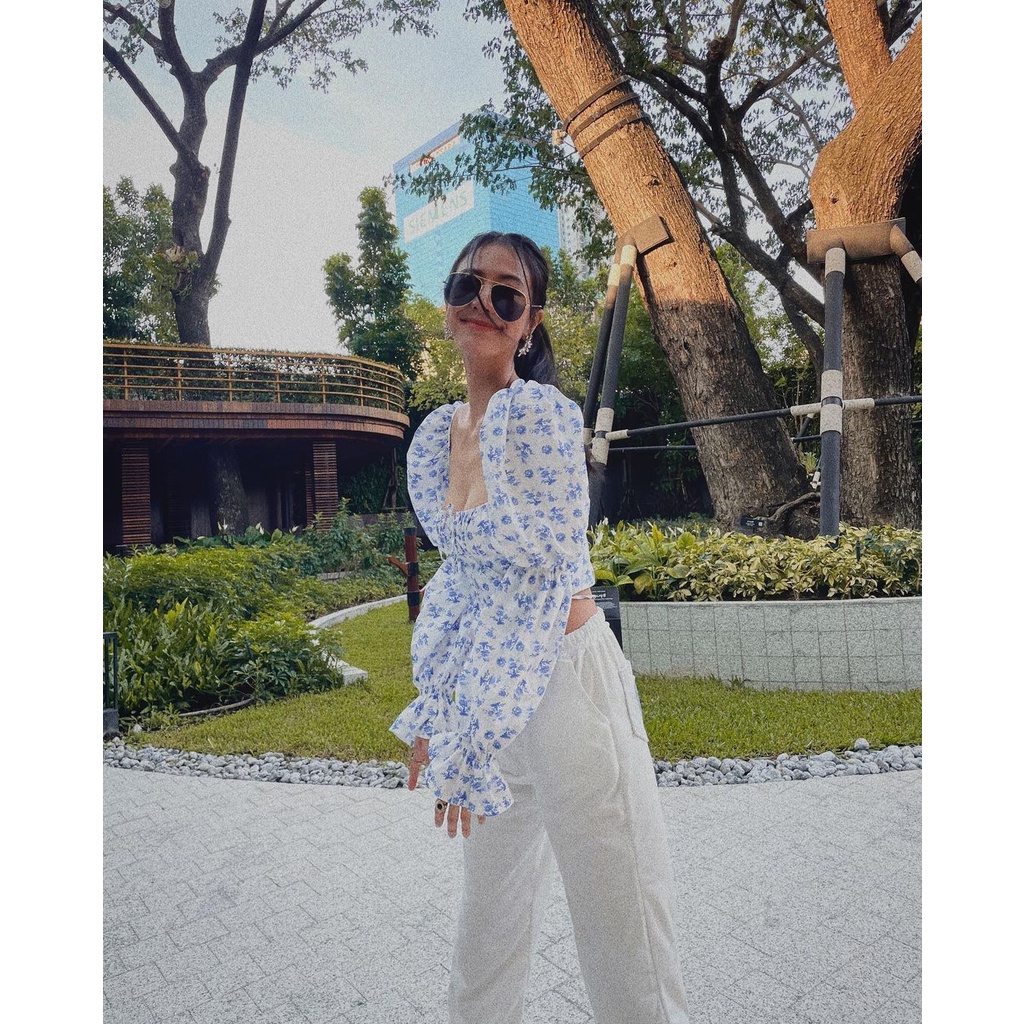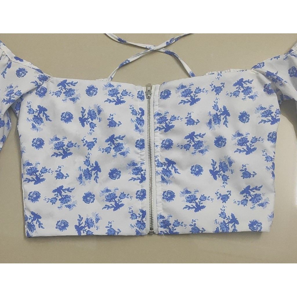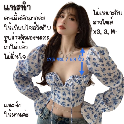 ปาดเป้ย เสื้อแซ่บ ครอป แขนยาว เสื้อสายฝอ เสื้อดาราใส่ ลายดอก สไตล์คาเฟ่ สตรีท เซ็กซี