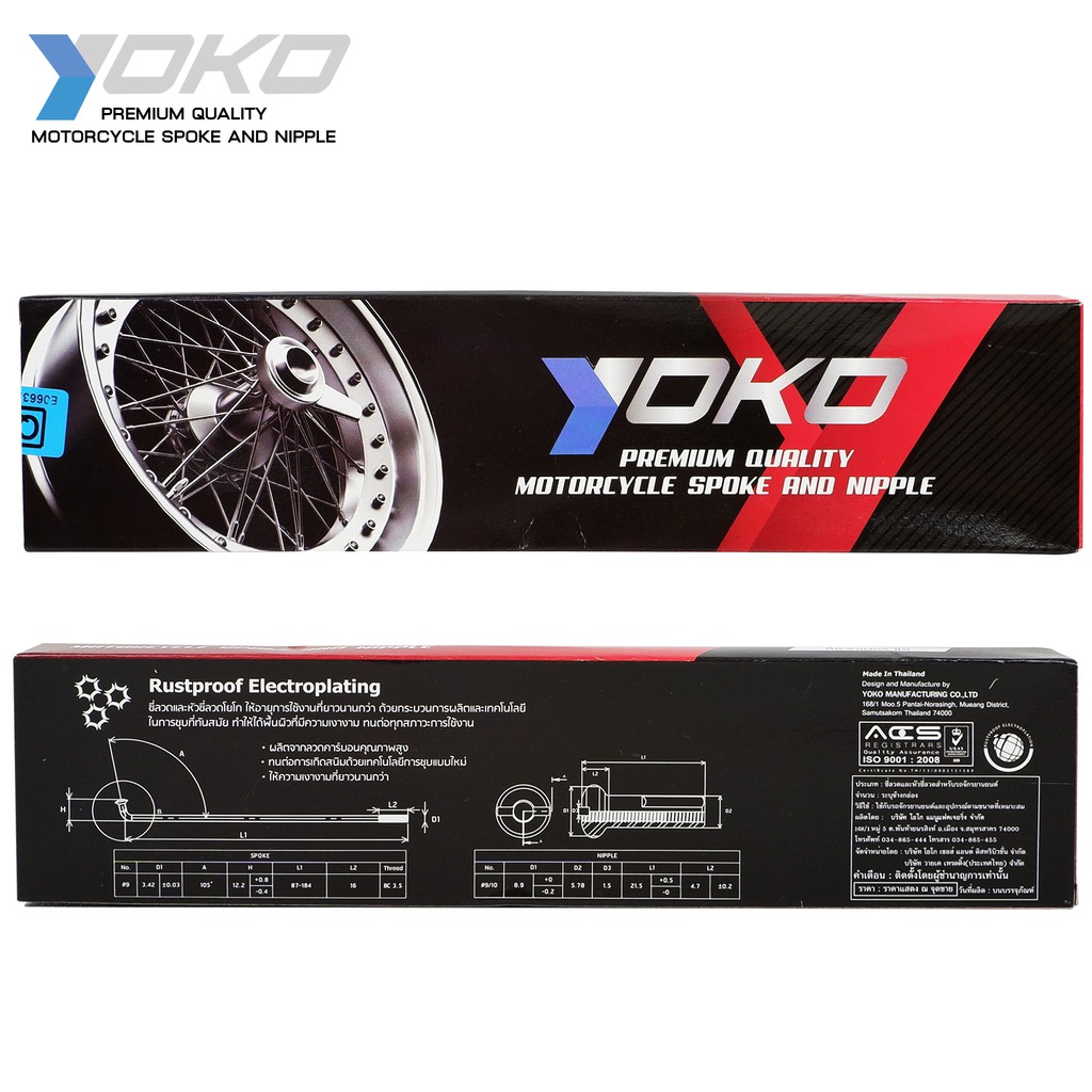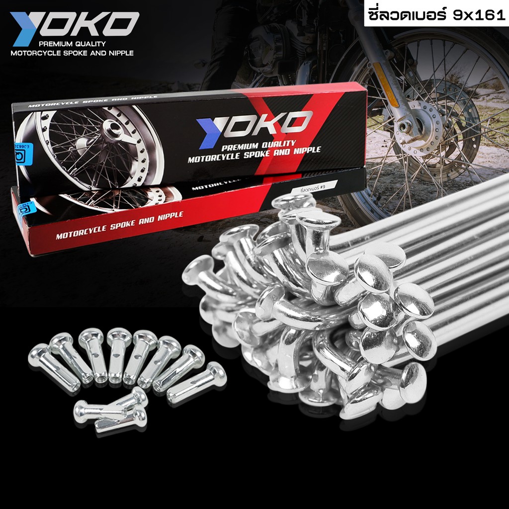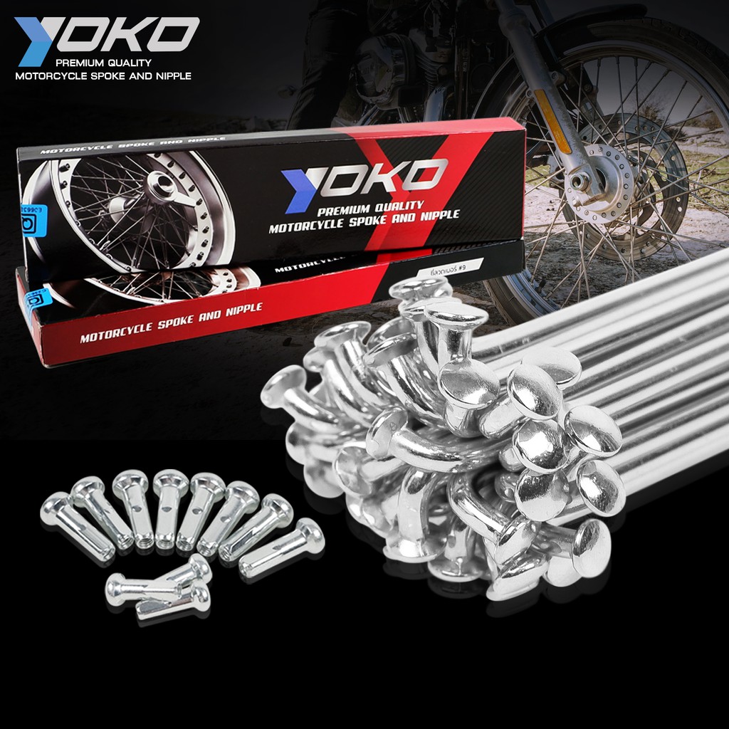 YOKO ซี่ลวด ชุบโครเมี่ยม ใส่ได้กับขอบ 14-16-17 นิ้ว ซี่ลวดชุบ #เบอร์9 มี 12 แบบ 1 ชุด ซี่ลวด YOKO
